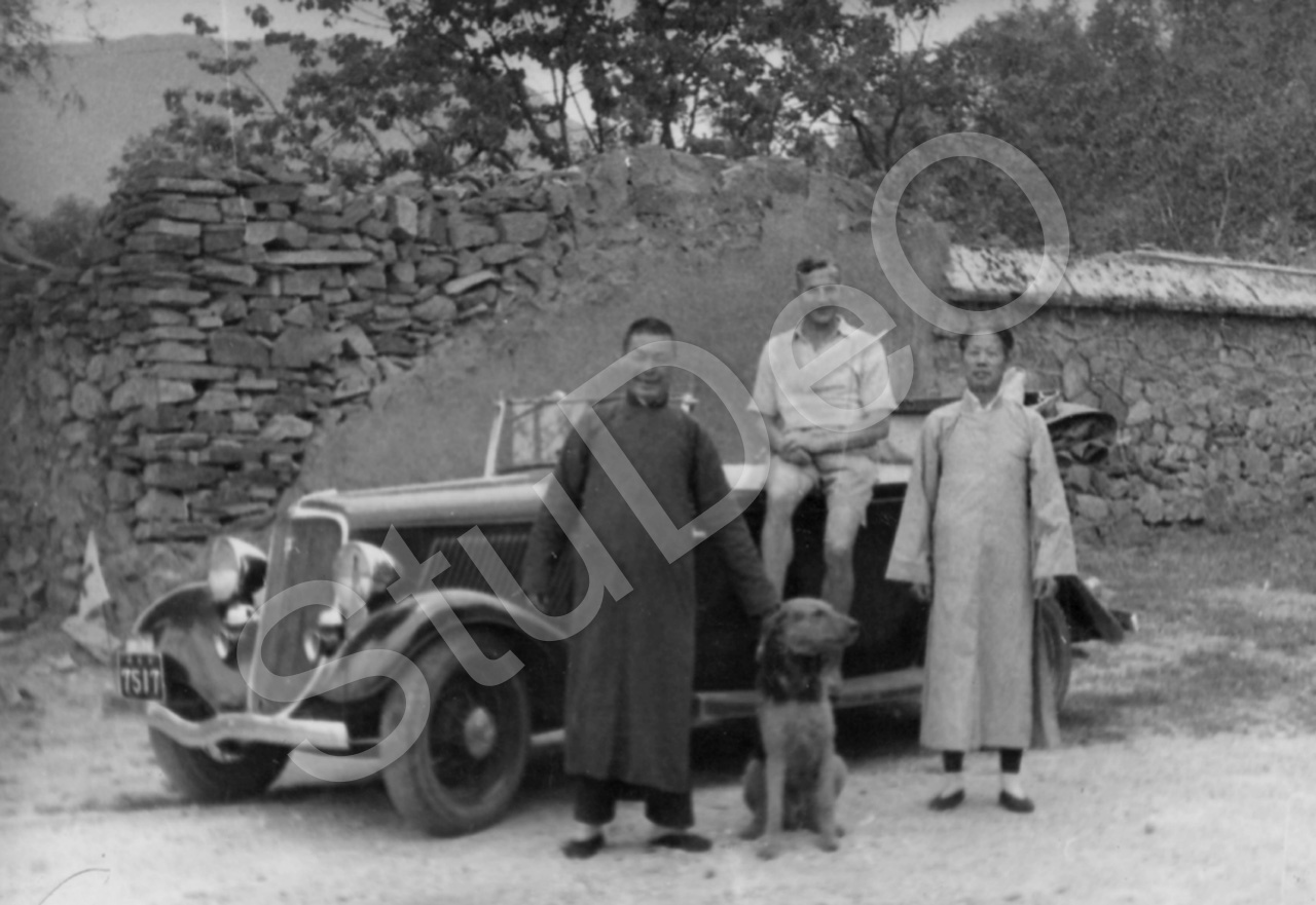 Beschreibung: Mit dem Auto zum Black Dragon Pool. Prof. Günther Huwer mit seinem chinesischen Chauffeur und der Amah.