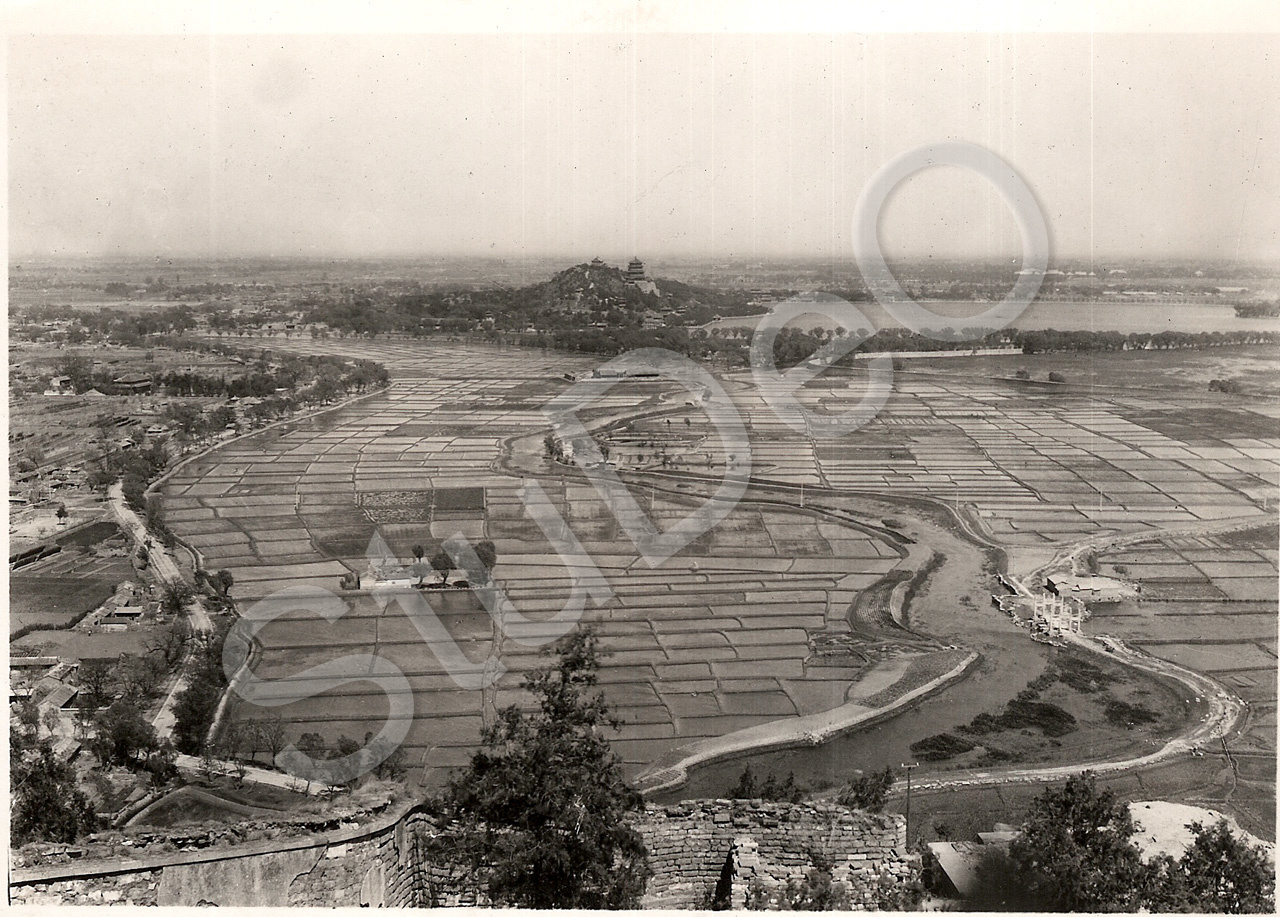 Beschreibung: Blick vermutlich von der Jadepagode auf die Ebene zwischen Jadequelle und Sommer­palast.