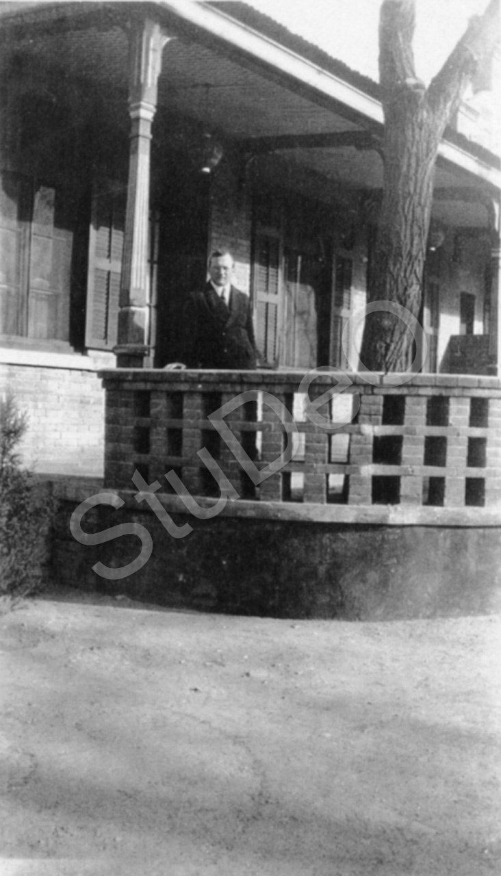 Beschreibung: Pastor Immanuel Heimerdinger auf der Terrasse der Pfarrwohnung Die Pfarrwohnung ist im „Deutschen Compound“, südlich vom Deutschen Hospital Peking gelgen.