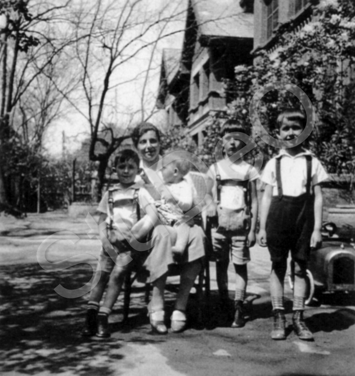 Beschreibung: Frau Stickforth mit ihren 4 Söhnen Claus, John, Peter und Jürgen.