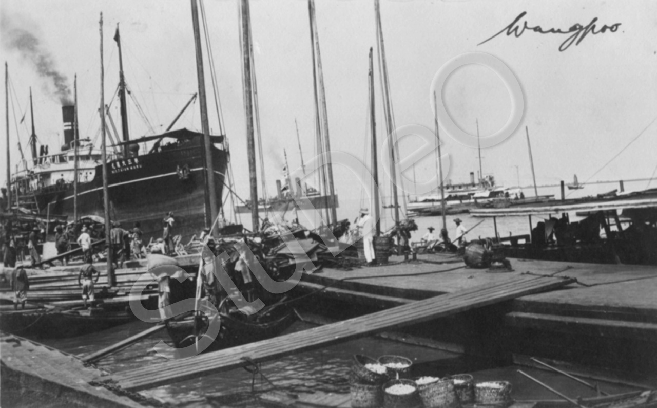 Beschreibung: Dampfer auf dem Wangpoo. Abfahrtsort der Yangtzefahrt.