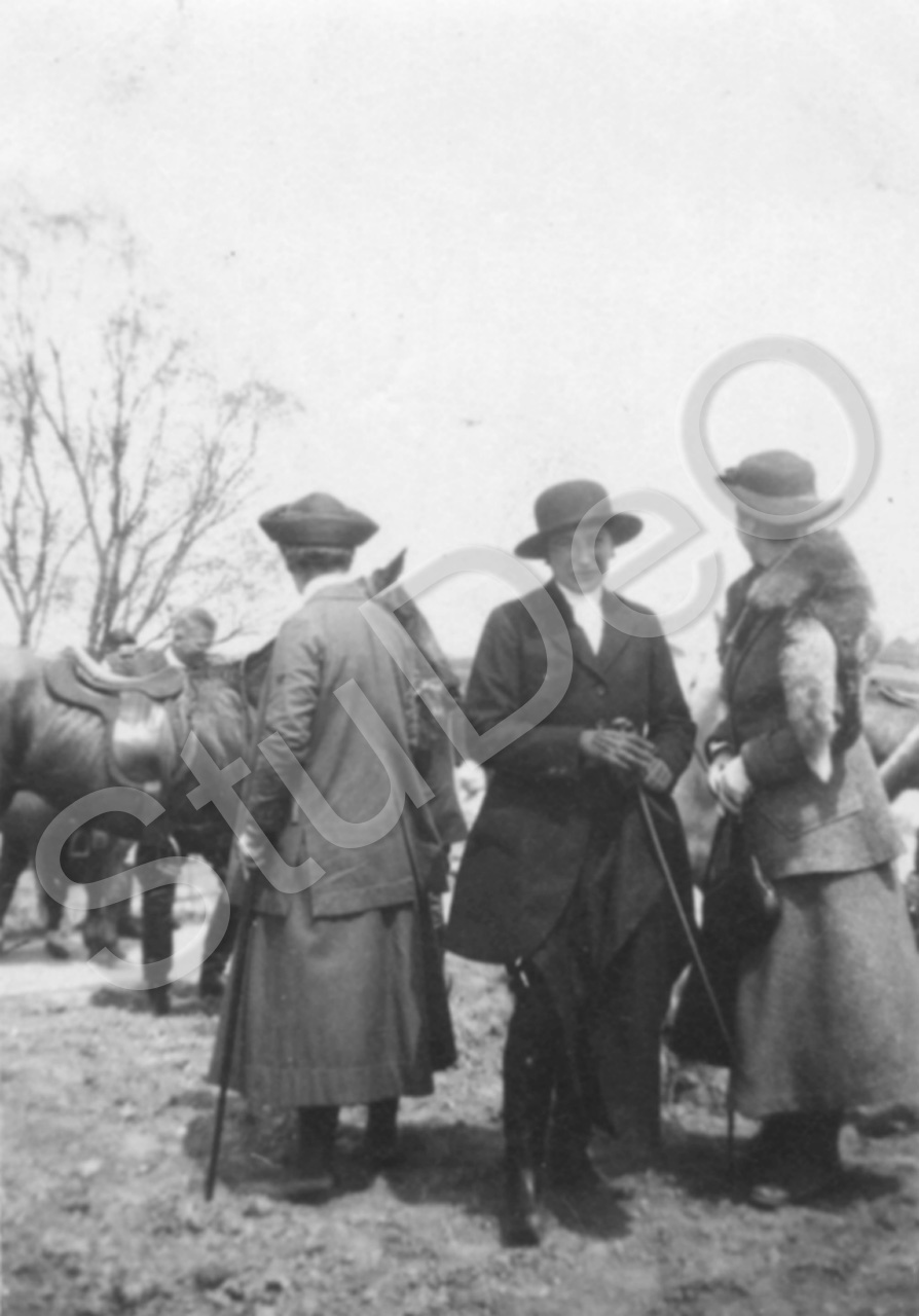 Beschreibung: Reiterinnen mit Pferden.
