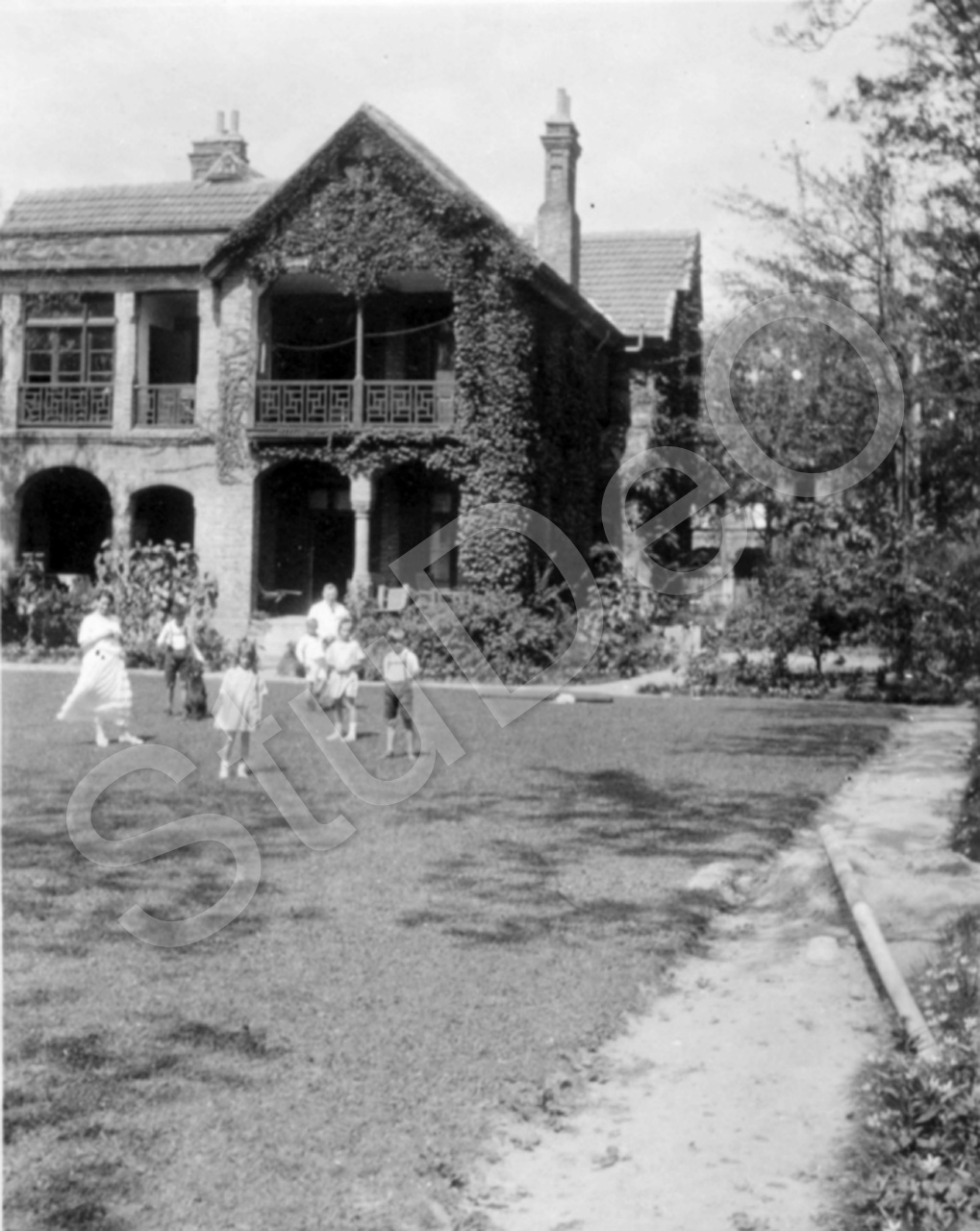 Beschreibung: Familie Ernst Röhreke mit den drei Kindern Gerngroß im Garten vor dem Haus von Gerngroß in der 79 Sinza Rd in der Internationalen Konzession.