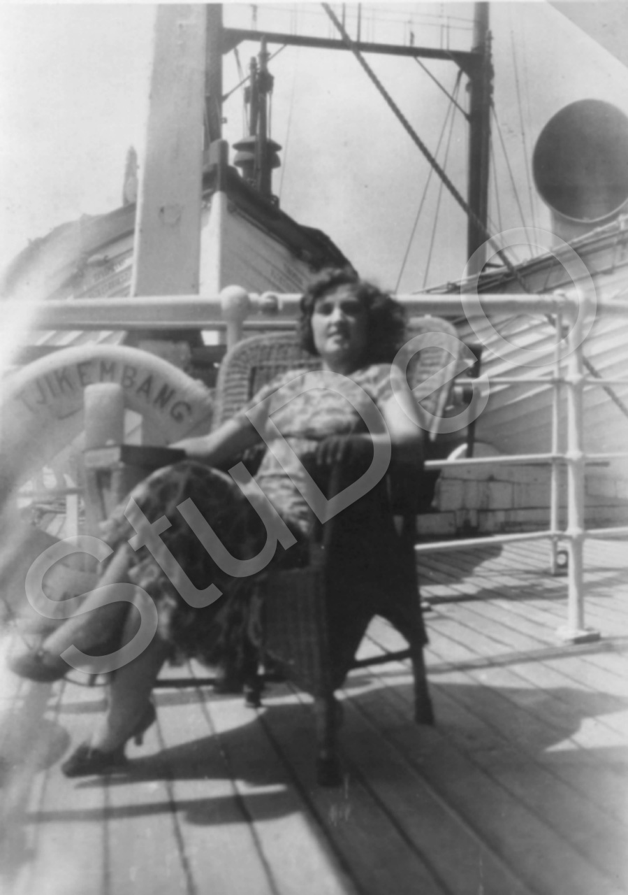 Beschreibung: „Heimreise“, Else Hauer auf der Tjikembang. Die Rettungschiffe fassen 50 Personen.