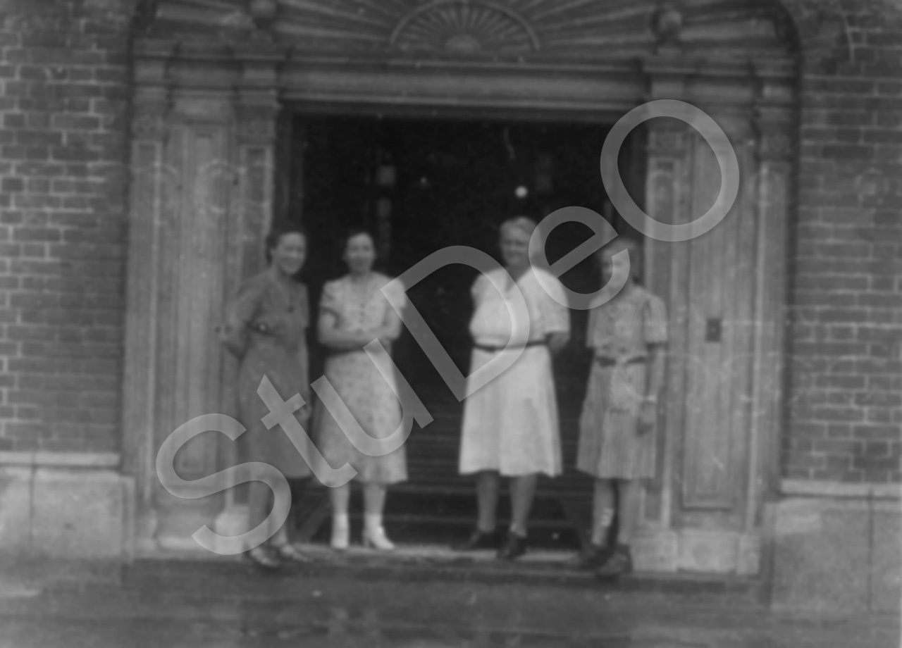 Beschreibung: Missionare Liebenzeller Mission vor dem Eingang des China Inland Missions Heim in Shanghai.