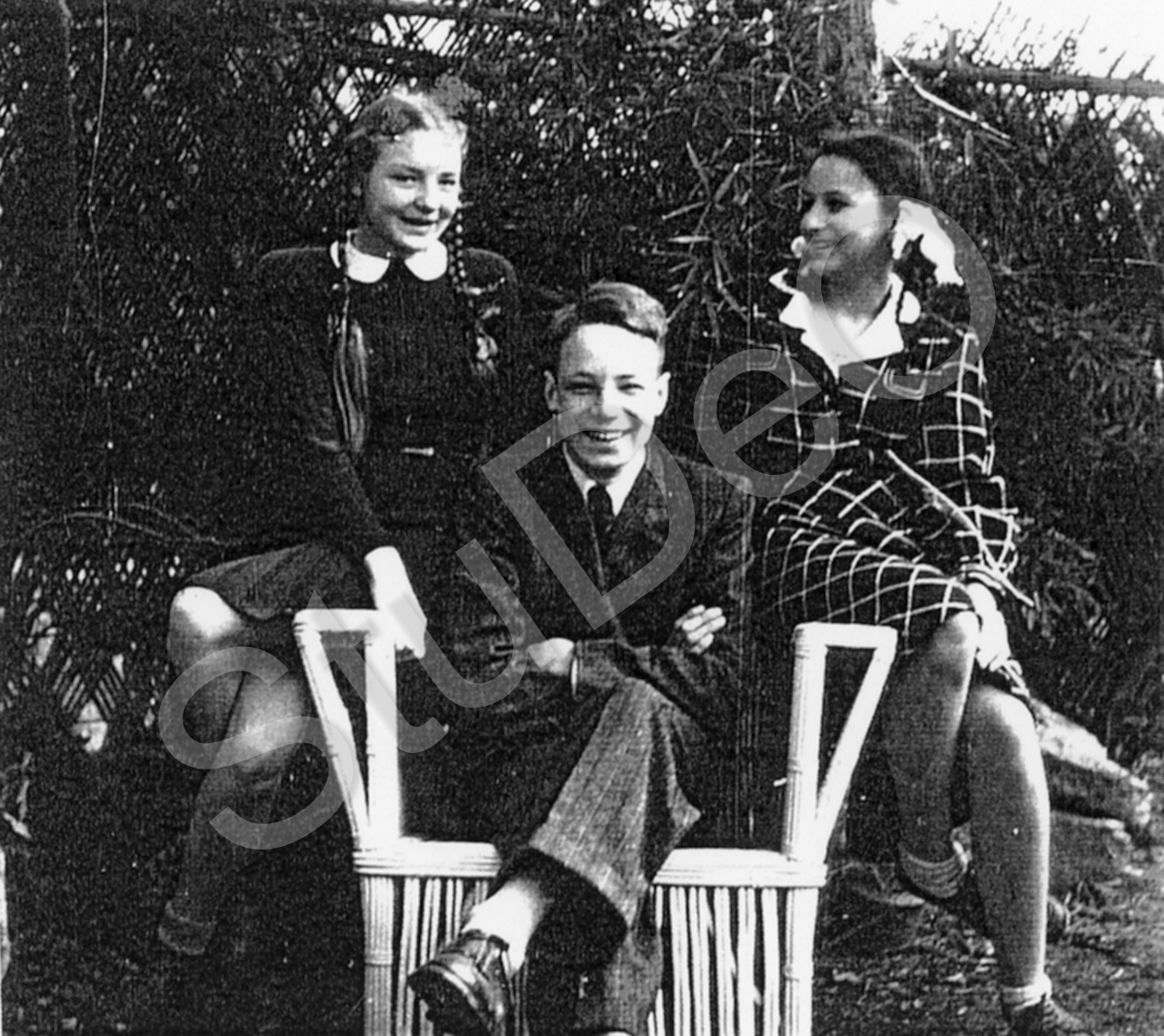 Beschreibung: li. Emanuela Mayer, ihr Bruder Walter und Ingrid Noll im Garten der Fam. Mayer.