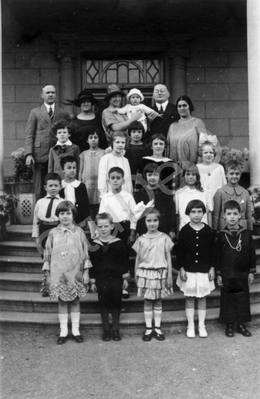 Beschreibung: Schulklasse mit Lehrer Ritterbusch (rechts oben). Unten links Else Frischen.