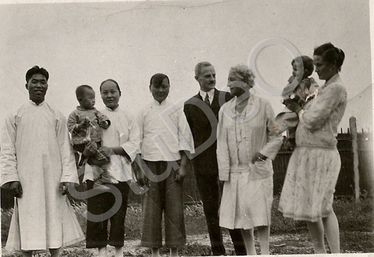 Beschreibung: Dr. Stübels (Tungji- UnivrsitätDienerfamilie mit Familie Berrer (Alfred, Selma und Jobst) und Amah, sowie eine Tante von Alfred Berrer.