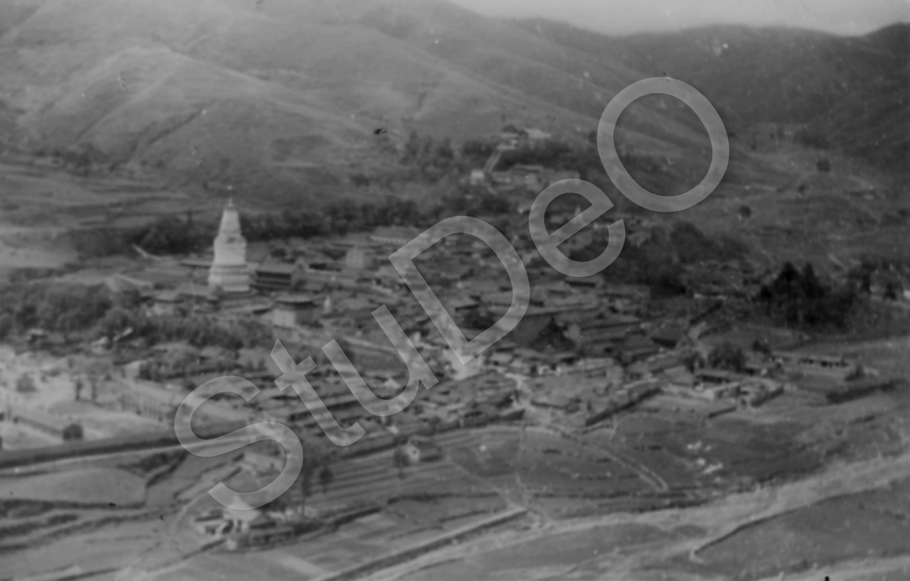 Beschreibung: Wutaishan, ein Bergmassiv mit 250 km Umfang im Nordosten der Provinz Shansi/Shanxi Vermutlich die Klosterstadt Taihua, die in der Mitte des Massivs liegt und 1000 Pagoden, Hallen, etc.hat.