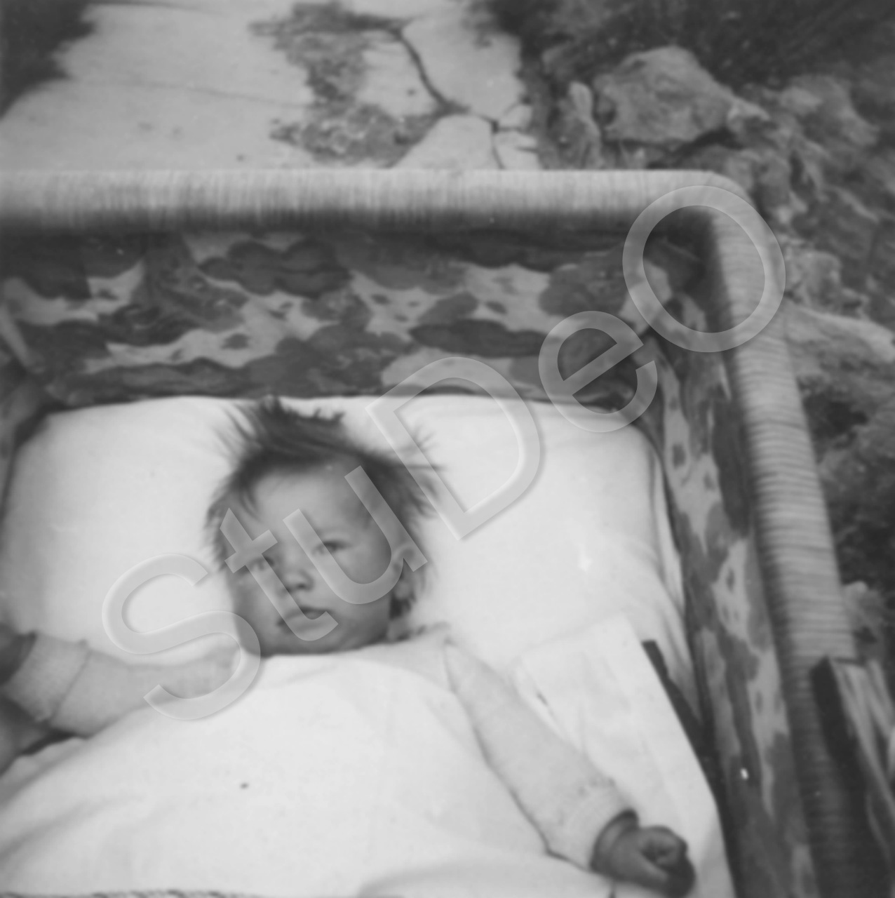 Beschreibung: Wolfgang Günther, 4 Monate u. 3 Wochen alt. Er ist mit viel Haar geboren, dafür hatte ihre Schwester später erst keine Haare.
