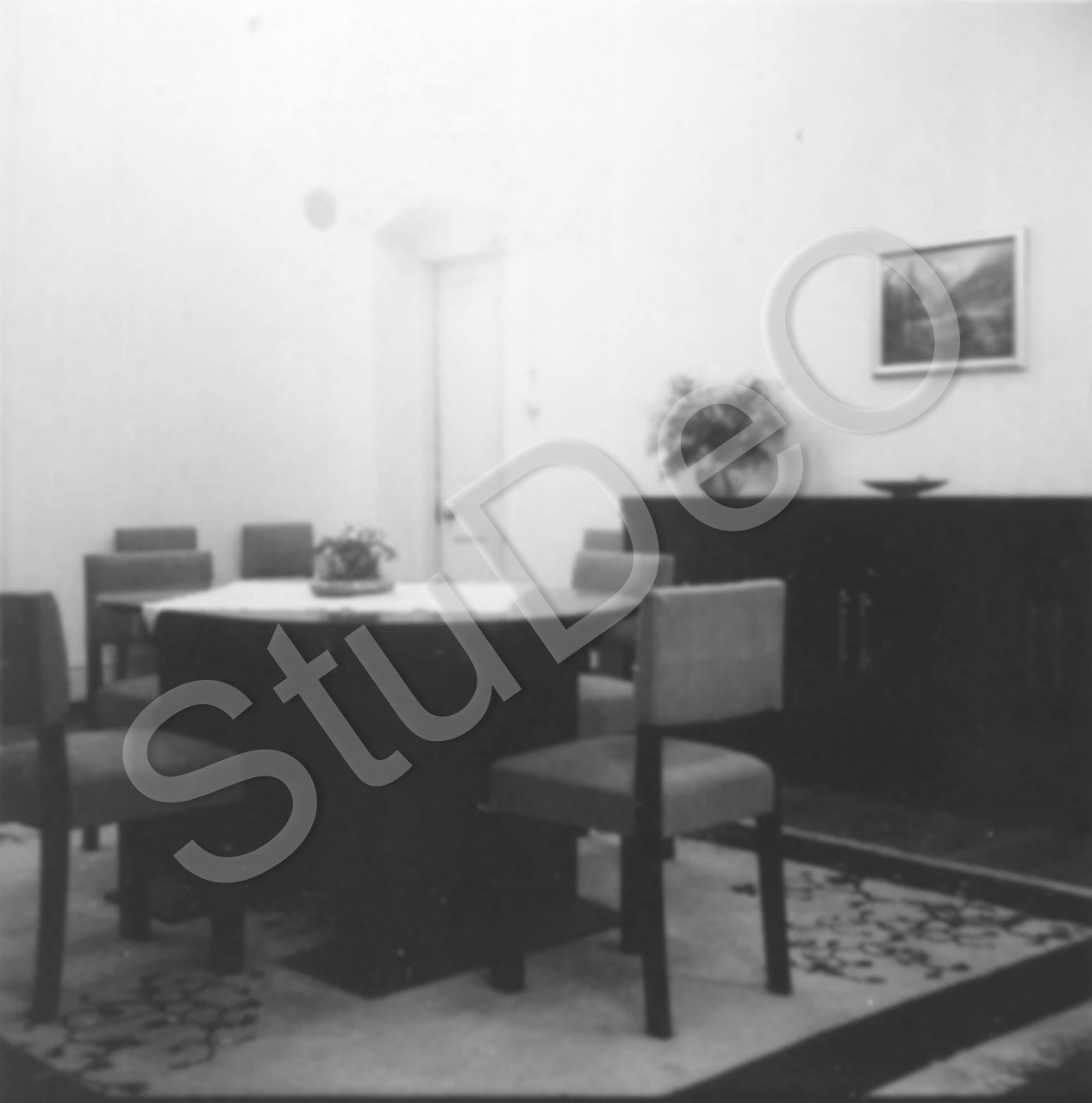 Beschreibung: Esszimmer im Haus der Familie Otto Günther. Die Tür führ zum Kinderzimmer. An der Wand links von der Tür stand später der Katzentisch für die Kinder.