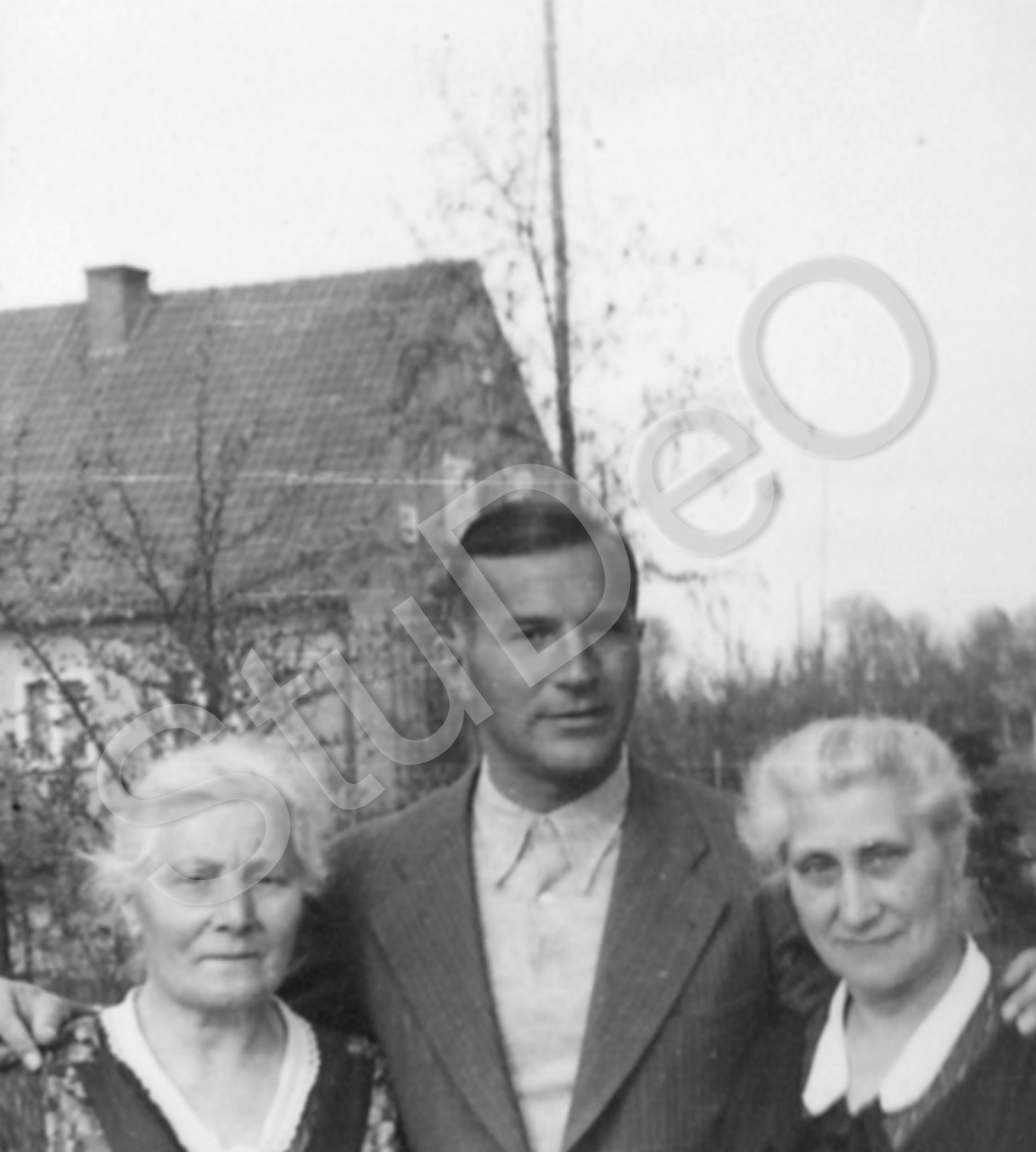 Beschreibung: Prof. Günther Huwer mit 2 Tanten, Erfurt.