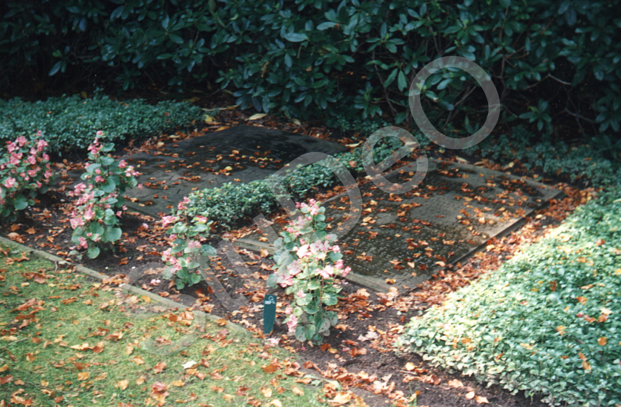 Beschreibung: Ohlsdorfer Friedhof, Hamburg. Urnengrab von ehemaligen Shanghaideutschen und Gedenktafel für die mit der „Van Imhoff“ am 19-1-1941 vor Sumatra untergegangenen Deutschen.