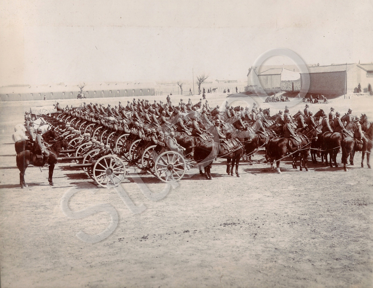 Beschreibung: Artilleriegespanne der „Fahrende Batterie Ostasiatische Besatzungs­brigade Ti“ des III. SB im deutschen Gesandtschaftsviertel.