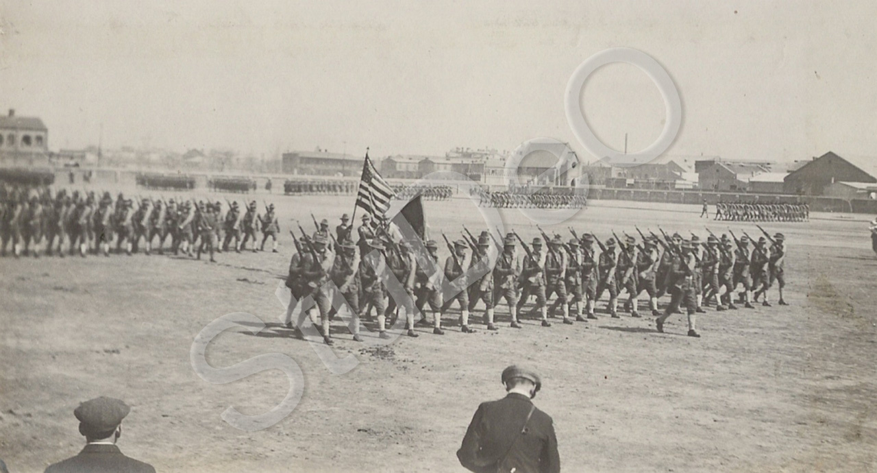Beschreibung: 15. Kompanie der US Infanterie marschiert zur Ehrung des amerikani­schen Generalkonsuls in Tientsin.