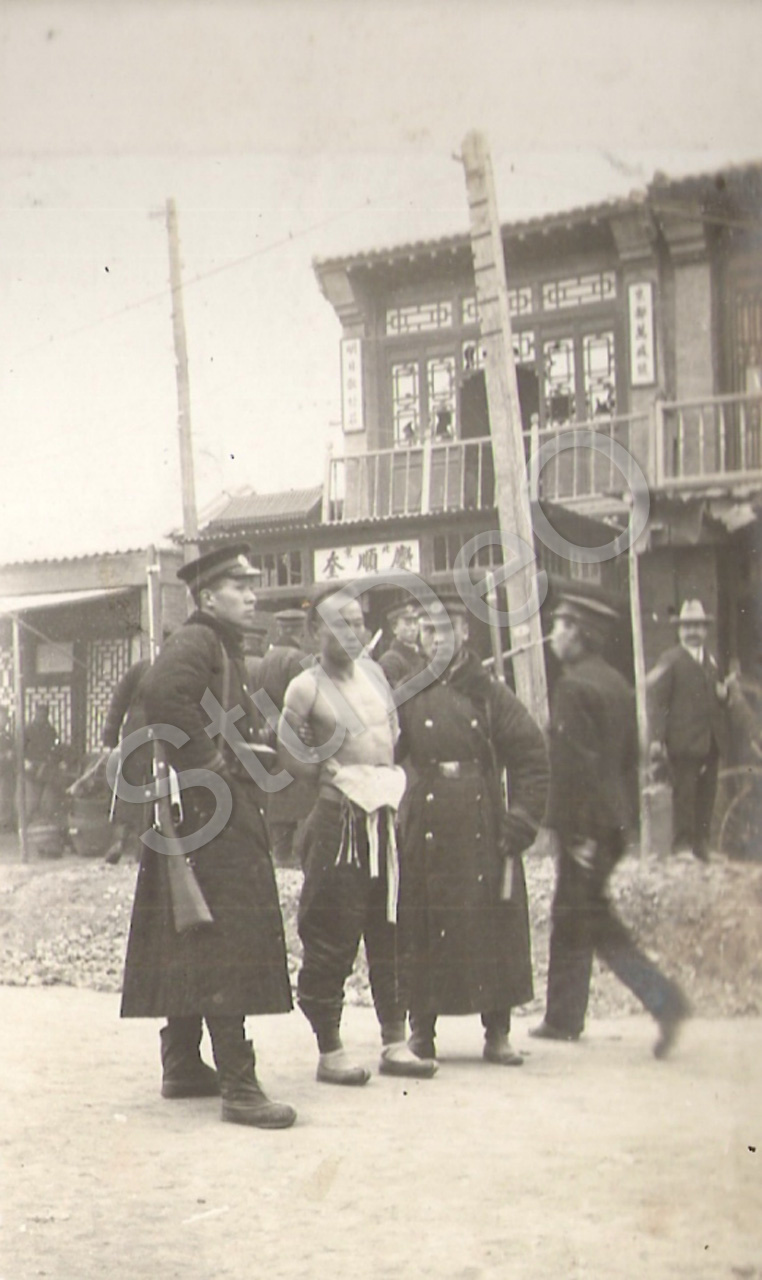 Beschreibung: Ein Plünderer wird von chin. Polizisten zum Enthauptungsplatz gebracht.
