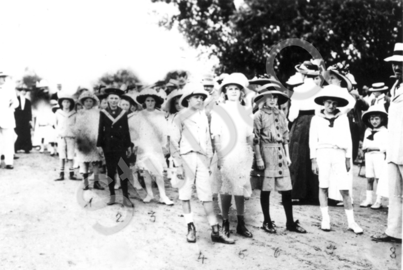 Beschreibung: Schüler und Eltern wohnen der Grundsteinlegung der „Kaiser Wilhelm Schule“ Tientsin bei (am 14.09.1913).