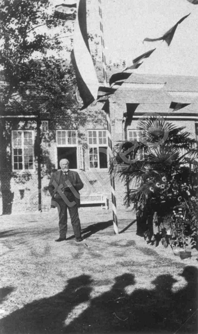 Beschreibung: Herr ? hält eine Ansprache zu den Gästen auf dem Schulhof zur Einwei­hung des Schulgebäudes der Kaiser-Wilhelm-Schule (s. auch P4020).
