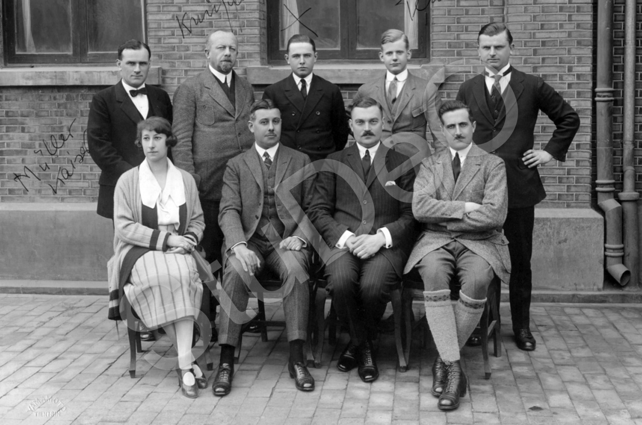Beschreibung: Belegschaft der Firma Melchers & co. Tientsin, Frl. H. Weber, H. Borné, Erich Knüpfel, F.M Eugen Müller, Carl Rossow, Otto Zwanck, Hubert Thiele, Hans Theuerkauf.