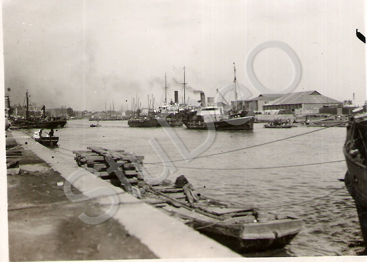 Beschreibung: Der Tientsiner Fluß Peiho. Dampfer liegen im Hafen.