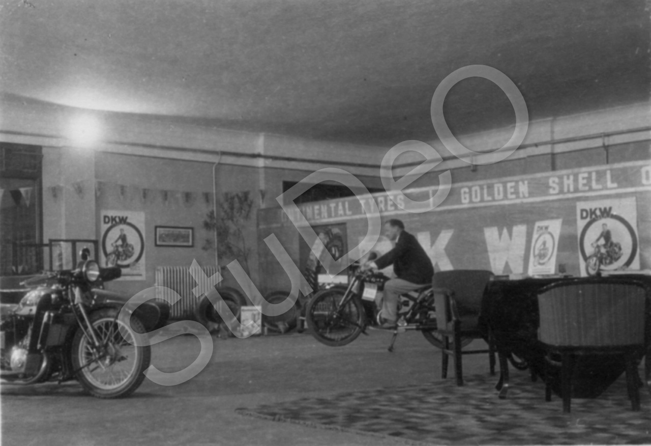 Beschreibung: Motorrad Ausstellung in der USA „Shell Sevice Station“Siehe auch  P1651.