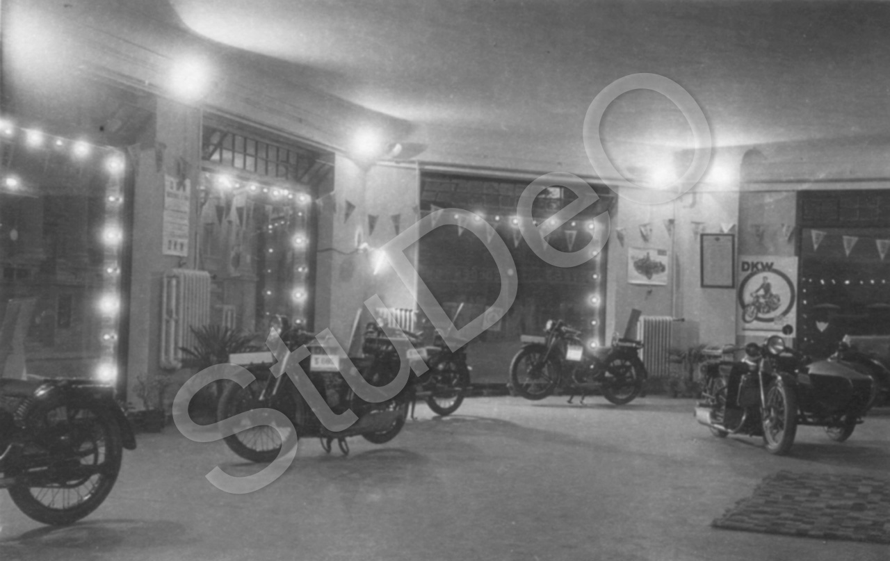 Beschreibung: DKW -Motorrad Ausstellung der USA „Shell Service Sta­tion“. Die Reifenausstellung ist in P0326 zu sehen.