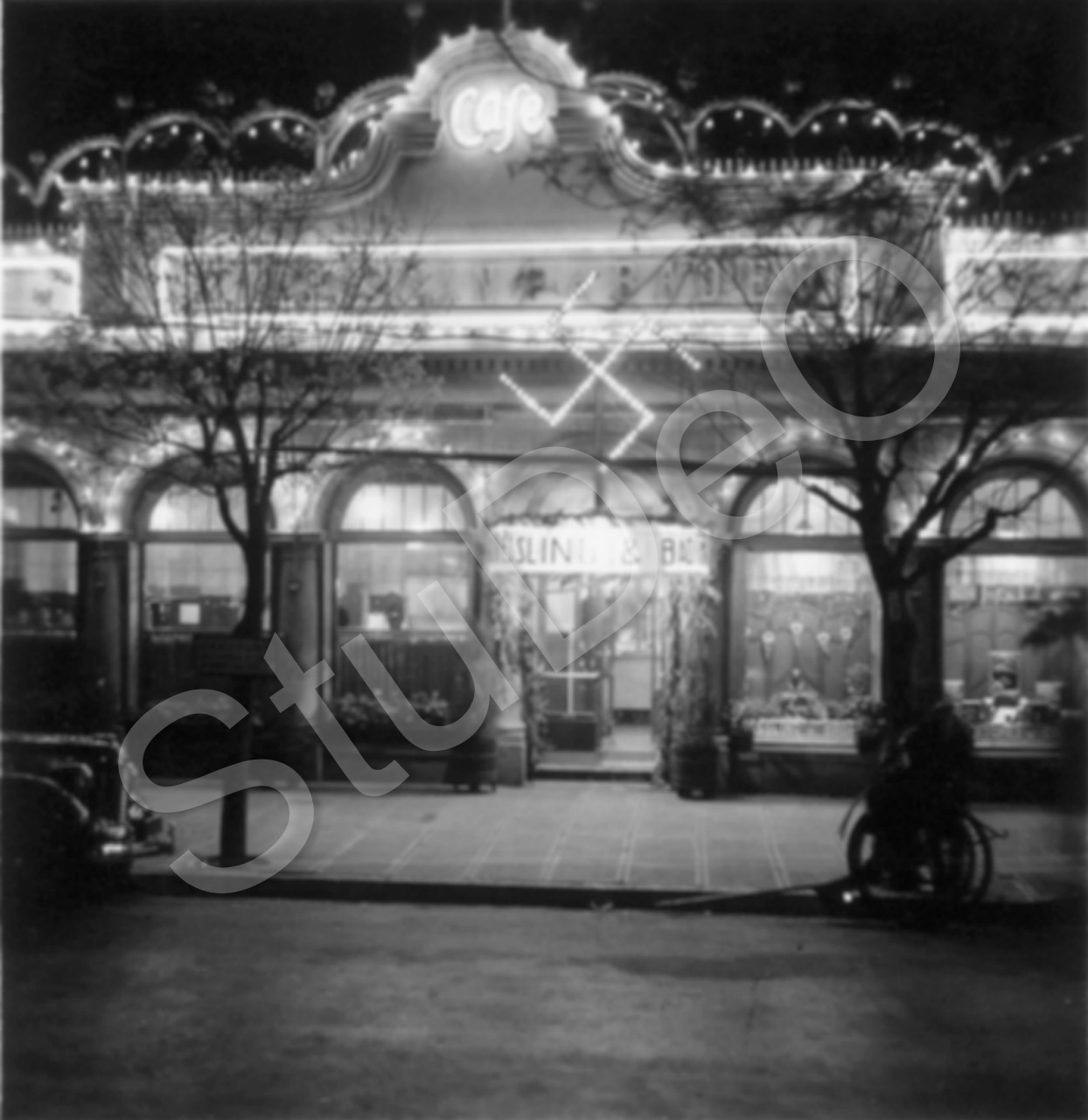 Beschreibung: Kaffee und Konditorei Kiessling & Bader Frontansicht am 01.05.1938.