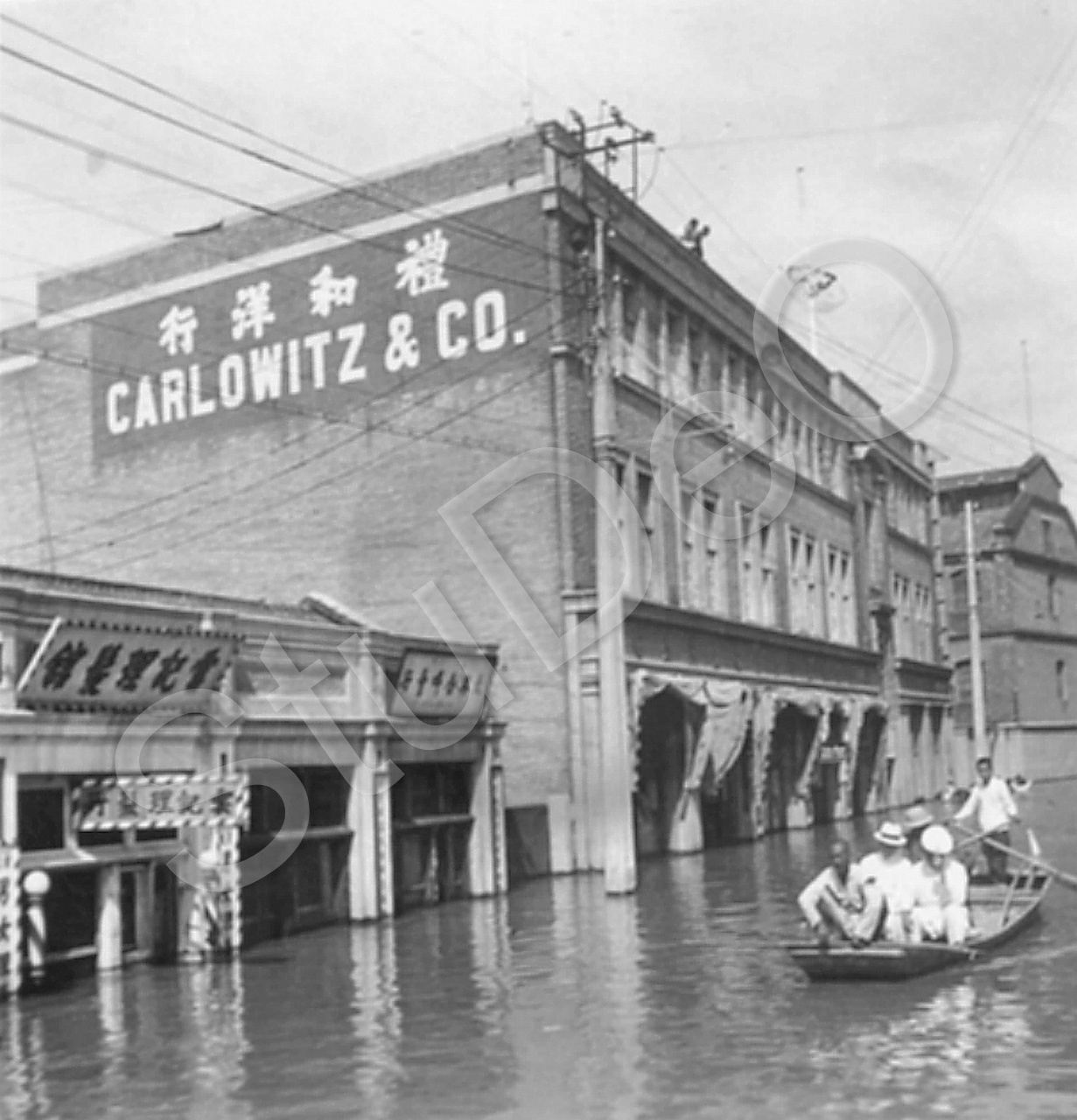 Beschreibung: Firma Carlowitz im Hochwasser.