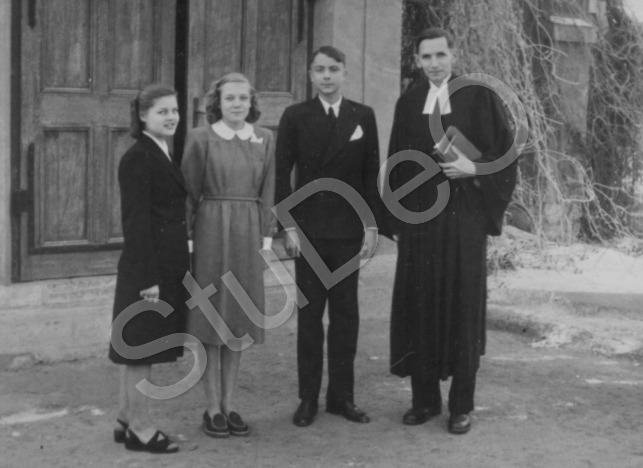 Beschreibung: Pastor Lehmann konfirmierte Marlene Reinhard, Diana Gartner, Rudi Tritthart.