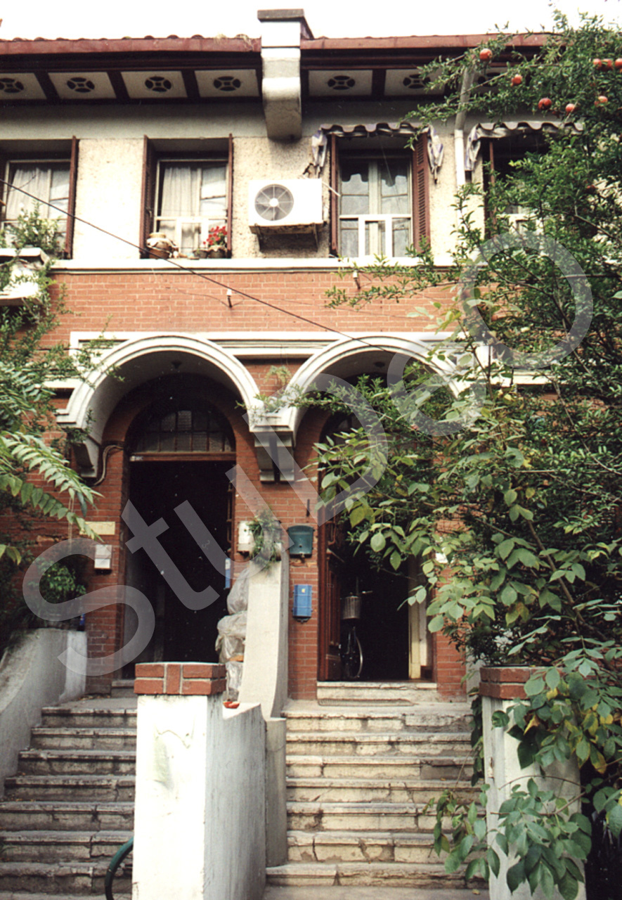 Beschreibung: Eingänge v. Reihenhaus P2844 links. Die Unterdachbemalung ist die gleiche wie im Newchwang Court (P2839-42).