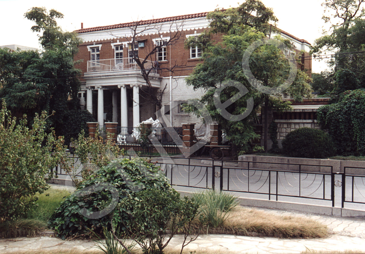 Beschreibung: Eine Villa am Bund, vorne der Grünstreifen etwa zwischen ehem. Kirin und Honan Road am Hai Ho nach SW fotografiert.