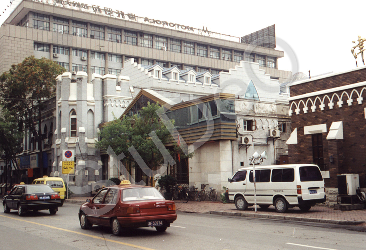 Beschreibung: Reste vom Gordon Hall von der Jiefang Beilu in Richtung Süden aus ge­se­hen. Das Große Gebäude ist die Rückseite des Tianjiner Regierungs­sitzes, das auf  P2854 im Hintergrund sichtbar ist.