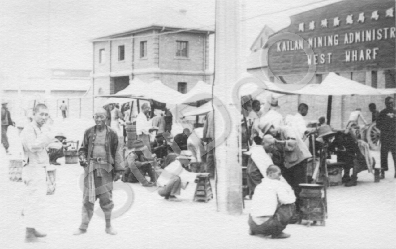 Beschreibung: Chinesische Händler vor dem Kailan Mining Administration, West Wharf.