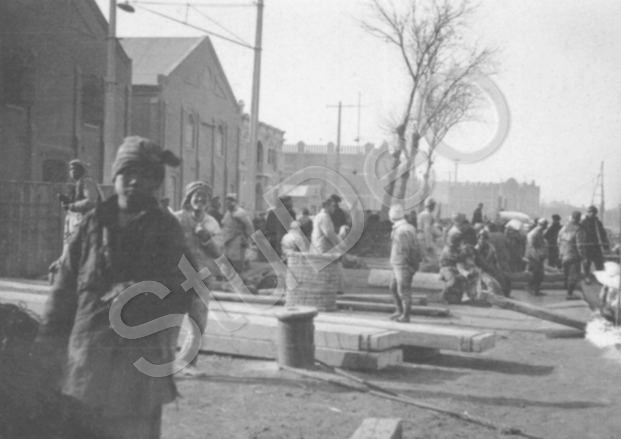 Beschreibung: “Am Peiho-Fluß”. Treiben am Kai im Winter.
