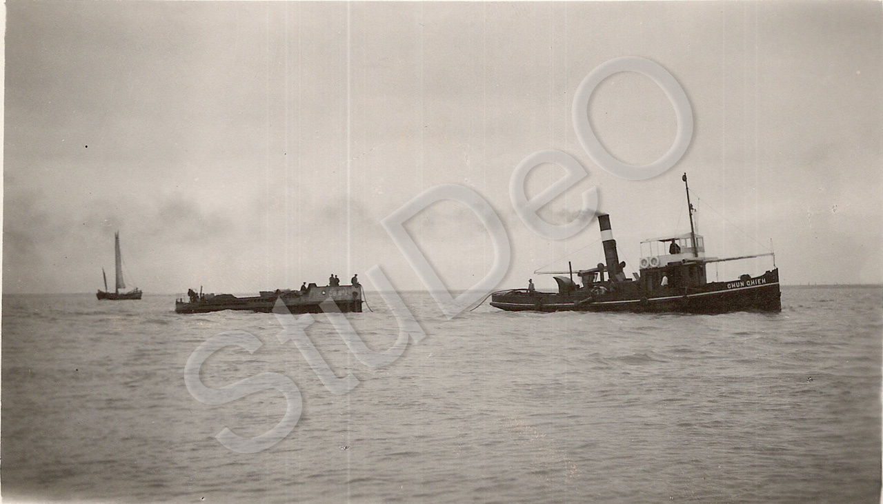 Beschreibung: Schiff der Hai Ho Conservancy Comission hat ein  Boot im Schlepptau auf dem Hai Ho.