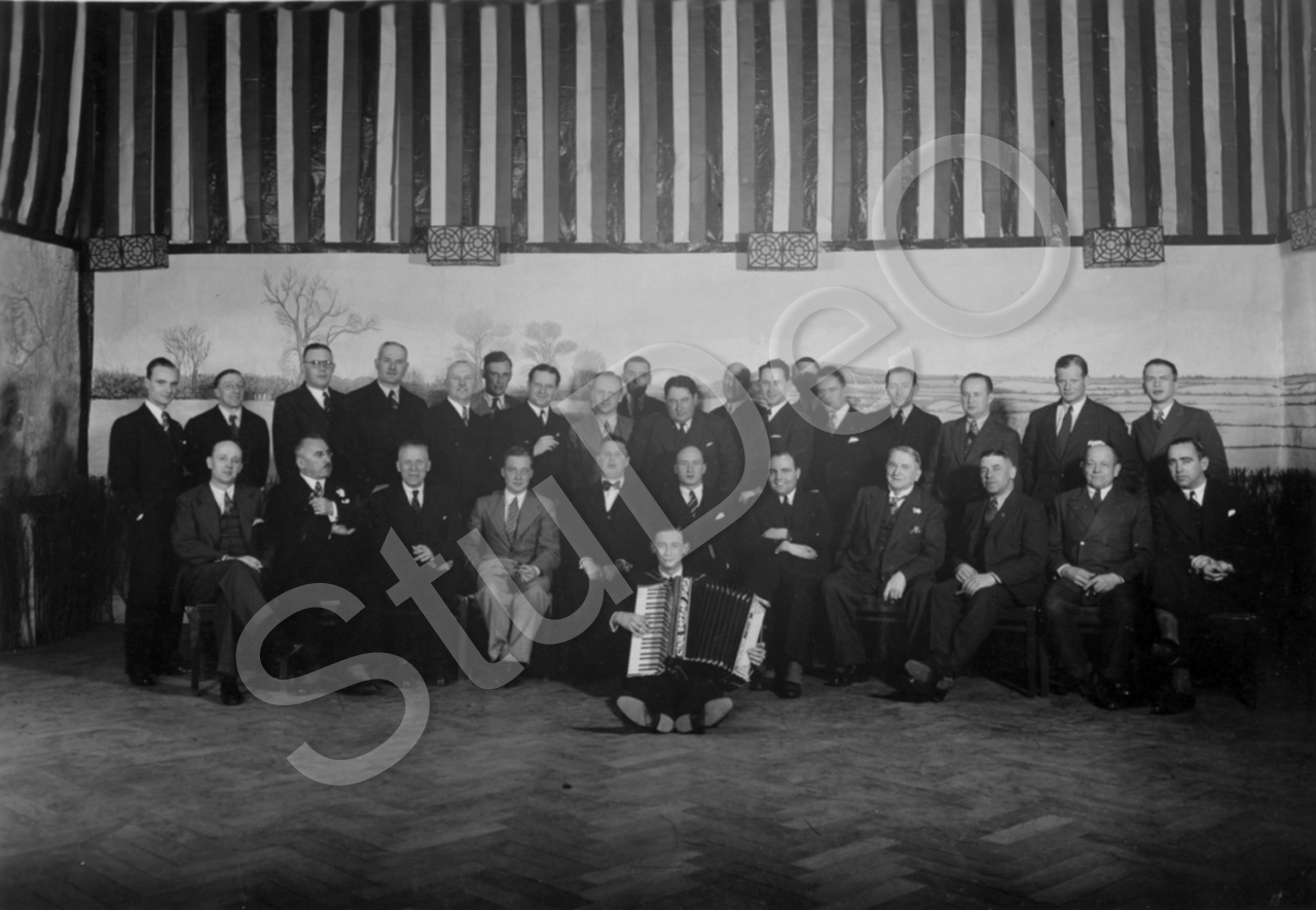 Beschreibung: Im Deutschen Club Tientsin. Willy Haenisch, Rudolf Mock, Ernst Gagg, W. Reichel, Hans Theuerkauf, Erich Kühne, G. Christ, H. Meinert, Rolf Blume, Hermann Stange, Wolfram Kohlmeyer.
