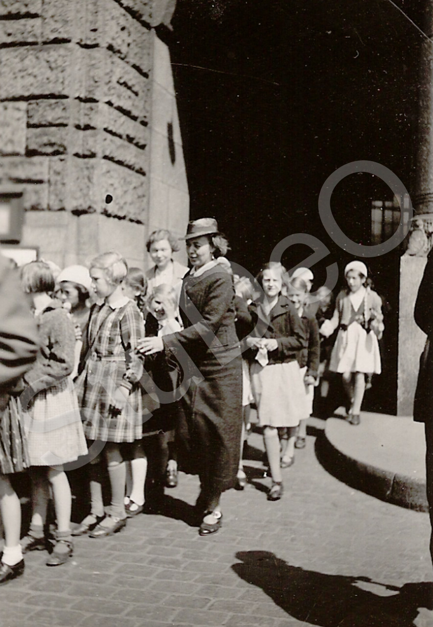 Beschreibung: Schulergruppe in Tientsin, Lehrerin Renata Steenken (mit Hut).