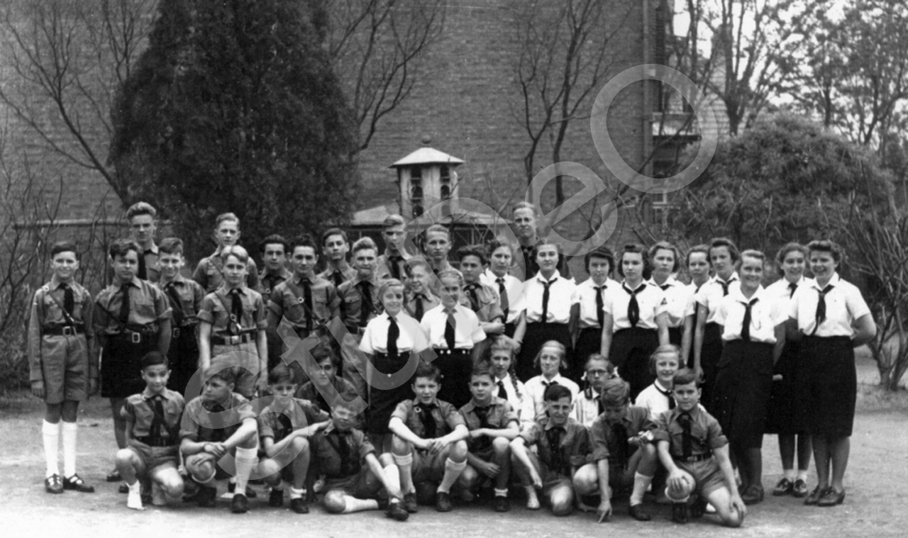 Beschreibung: HJ-Standort Tientsin mit dem Standortführer: Herrmann Rapp, hinterste Reihe rechts. V.l.n.r hinten: Kurt Buhmeier, Horst Knüpfel, Egon Huck, Arnold Skaretzki, Gerhard Rosatzin, Horst Smith; davor stehend v.l.n.r. Hilmar Hänisch, Charli Wolter, Franz Geyling, Carl Emmo Vissering, Karl Detter, Heineo Hackmack, Inka Vissering, Jimmy Wolter, Gertrud Wetzel, Ludwig Lange, „Mausi“ Barbara Geyling, Gisela Lange, ?, Grete Staratschek, Gertrud Mucks, Irmtraud Wittig, Felizitas Rumpf, Erika Wittig, Lore Nimz,, ?, hockend v.l.n.r. Edmund Hoffmann, Karl Arnold Weber, Rüdiger Mock, Waldemar Paulsen, Herbert Arnhold, Boris Ortner, Horst Rosatzin, Irene Kozer, , Herta Knüpfel, Walter Fritz , Irene Marks, Werner Jannings, Gerhild Hölzel, Heinz Töbich.