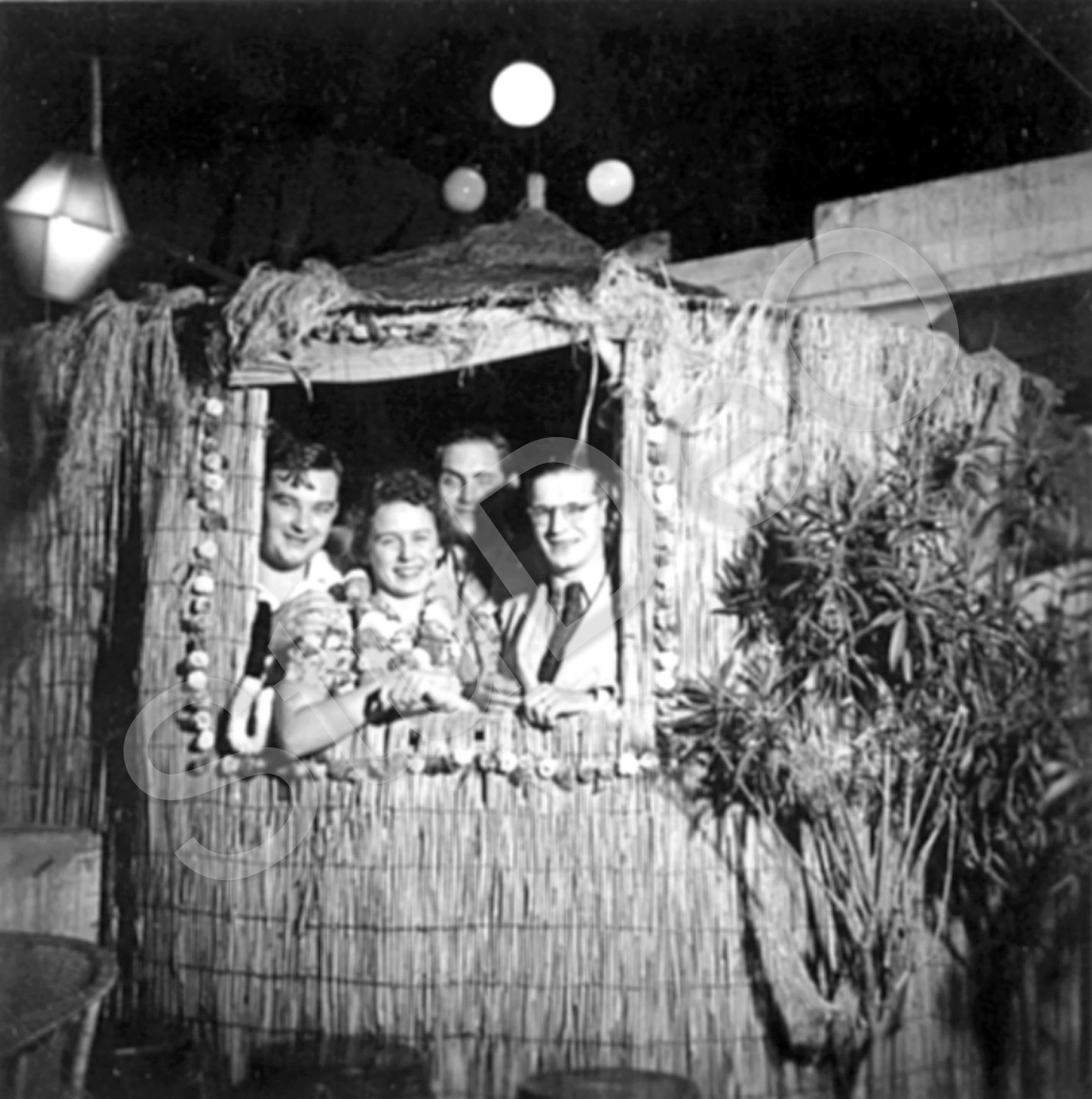 Beschreibung: Edward B. Unger, Elvira Wormsbecher, Siegfried Lohmann, Fritz Emme in Tientsin, Kabarett „Black Hand“. Emme schreibt: Hier hatten wir beschlossen, uns zu verloben. Unger tanzte stets mit einem dicken Schlüssel in der linken Hosentasche. (Im Album klebt neben dem Foto ein Zeitungsaus­schnitt über Unger, Kobe/Japan.)