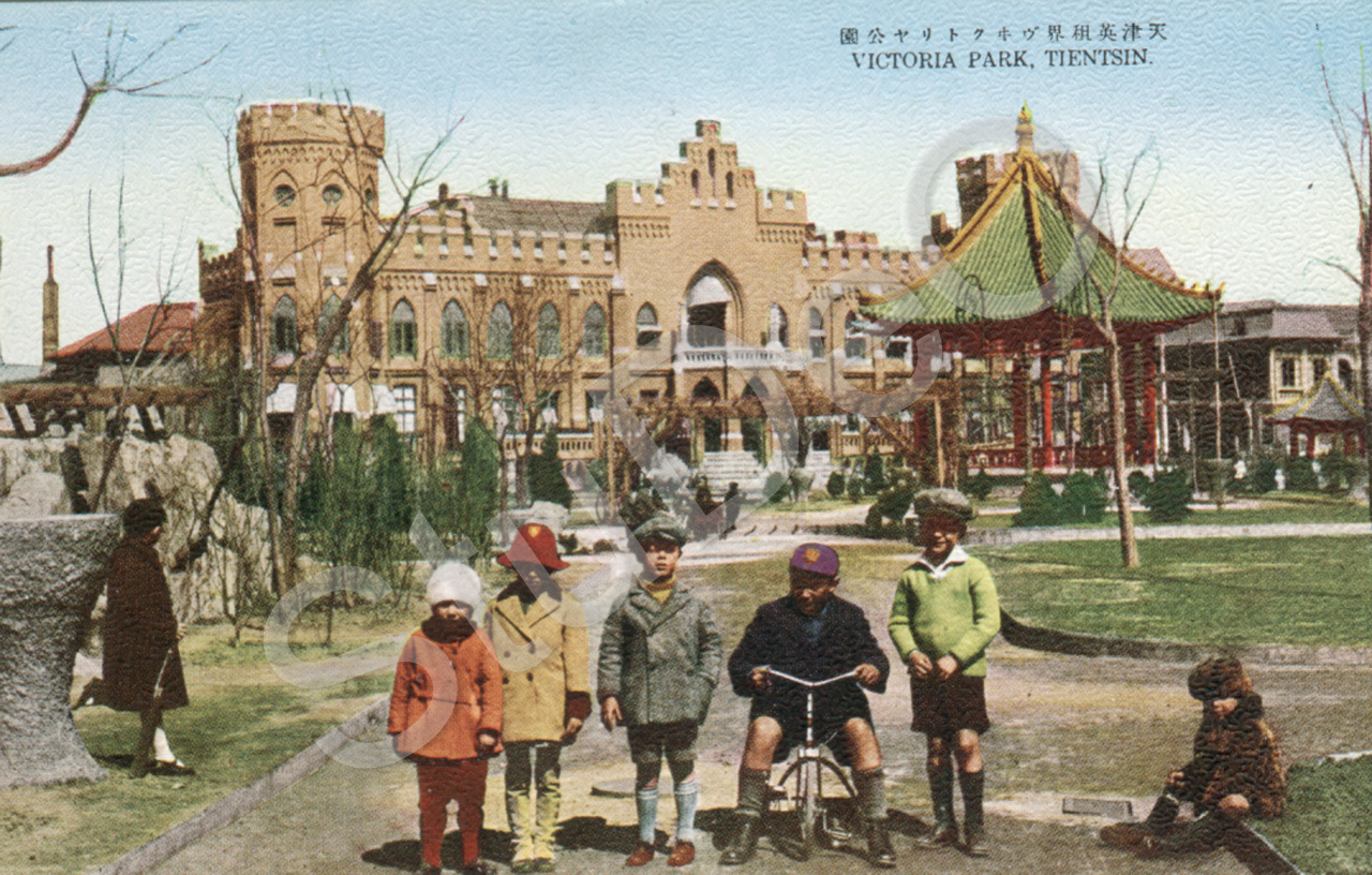 Beschreibung: Gordon Hall am Victoria Park. Im Vordergrund europäische Kinder.