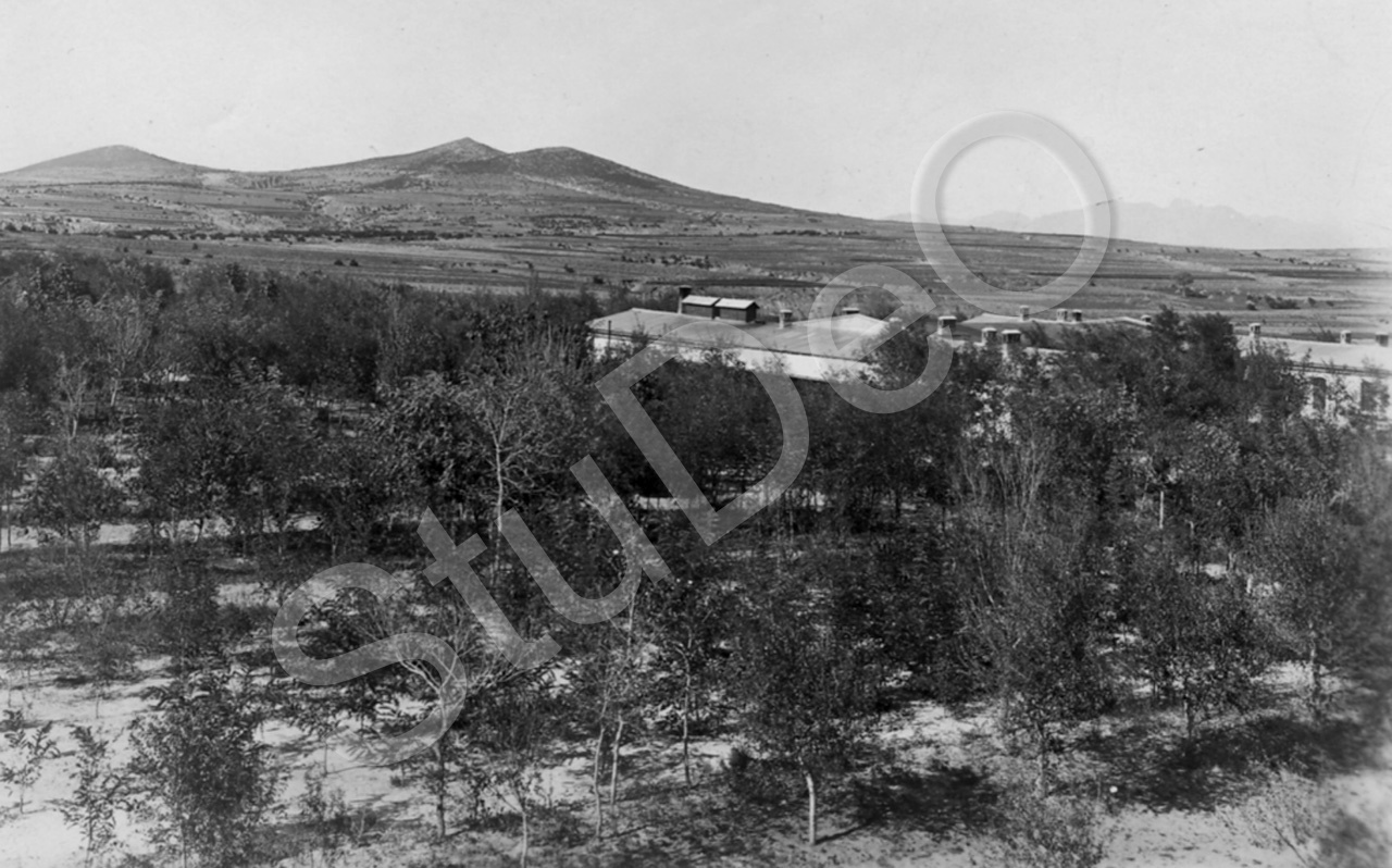 Beschreibung: Offiziersmesse Syfang. Panorama vom Wasserturm, im Hintergrund der Ku shan. Vorder- Mittelgrund Offizierslager des III. Seebataillon, 1. Kompanie.