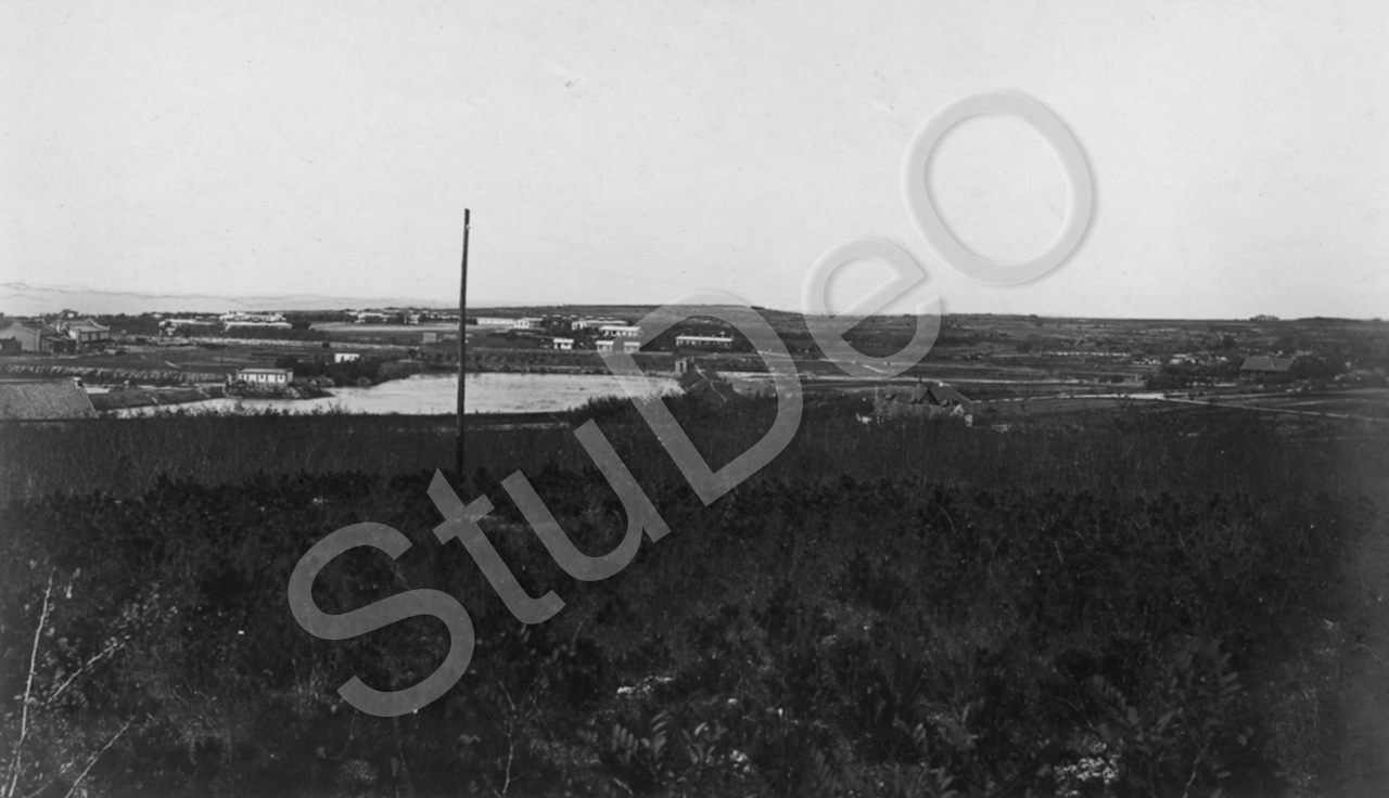 Beschreibung: Panorama von Syfang. Manschaftslager des III. Seebataillon, 1. Kompaniein Syfang.  Peishaho-Mündung.