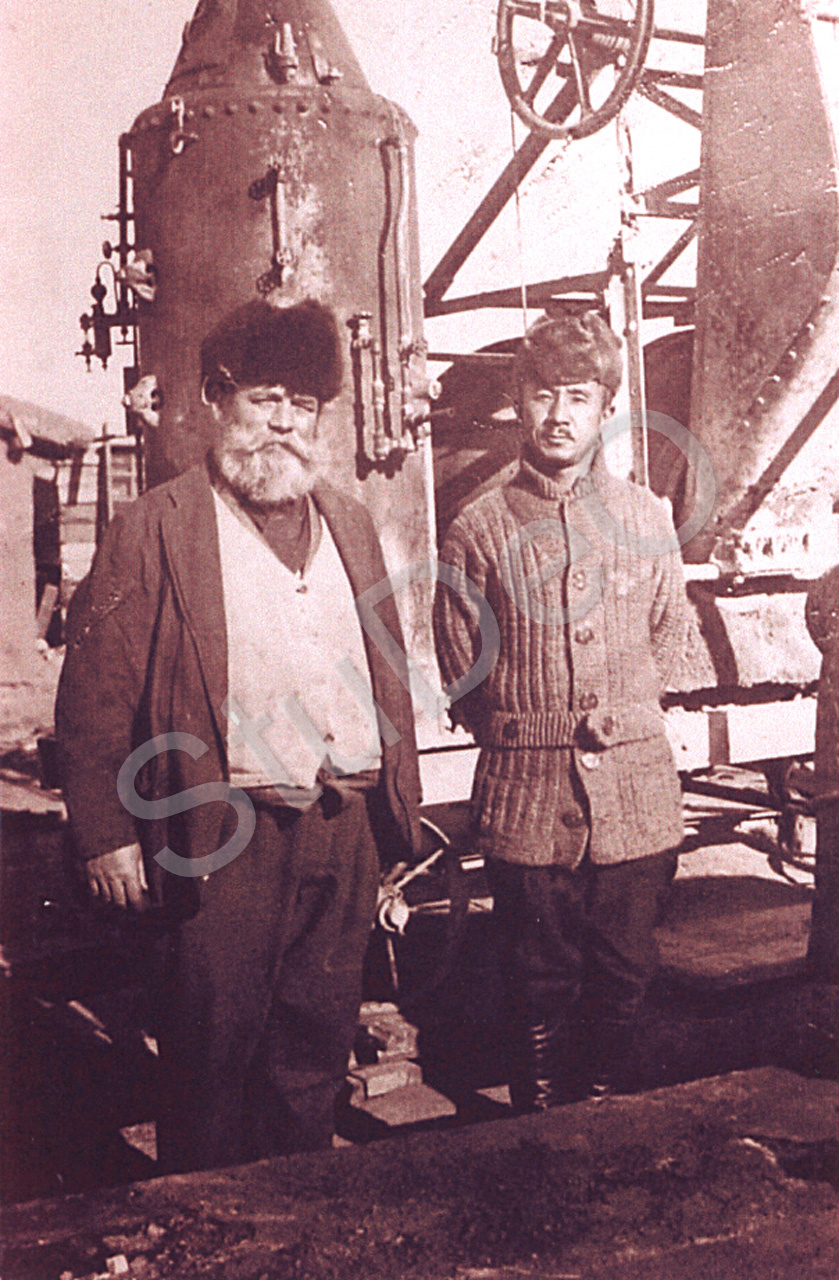 Beschreibung: Ingenieur Eduard Mikodemus Malin mit einem Mitarbeiter in einem Bergwerk.
