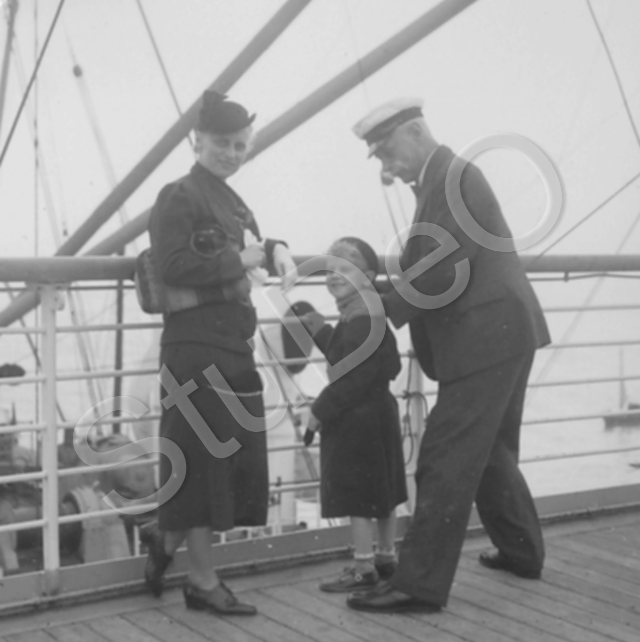 Beschreibung: Magret Lehmann und Sohn Jochen auf Deutschlandreise, Hermann Huwer, der die Heimreise antritt, auf der Saarland (Stapellauf: 20.10.1923, 6.863 BRT, im Ostasiendienst der HAPAG, Platz für 47 Passagiere 1. Kl., Ende 1929 in Dairen, wurde sie am 30.9.1940 von Japan übernommen, als Teiyo Maru am 2.3.1943 von US-Bombern versenkt)