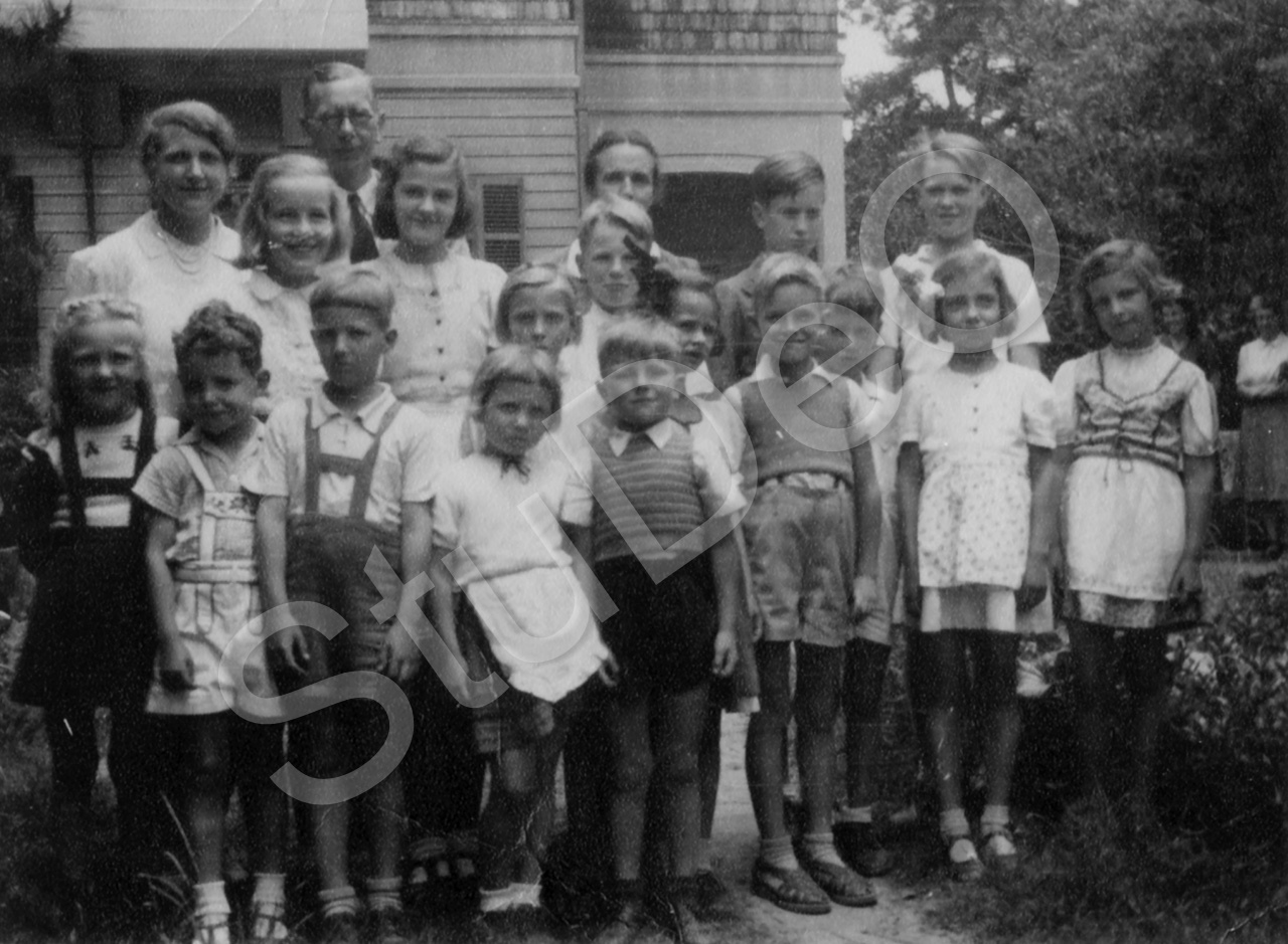 Beschreibung: Abschiedsfoto der Dt. Schule Shioya / Kobe. U.a. Monika und Helmuth Wohlfarth, Ursula und Claus Schäfer, Lehrerin Reverey.