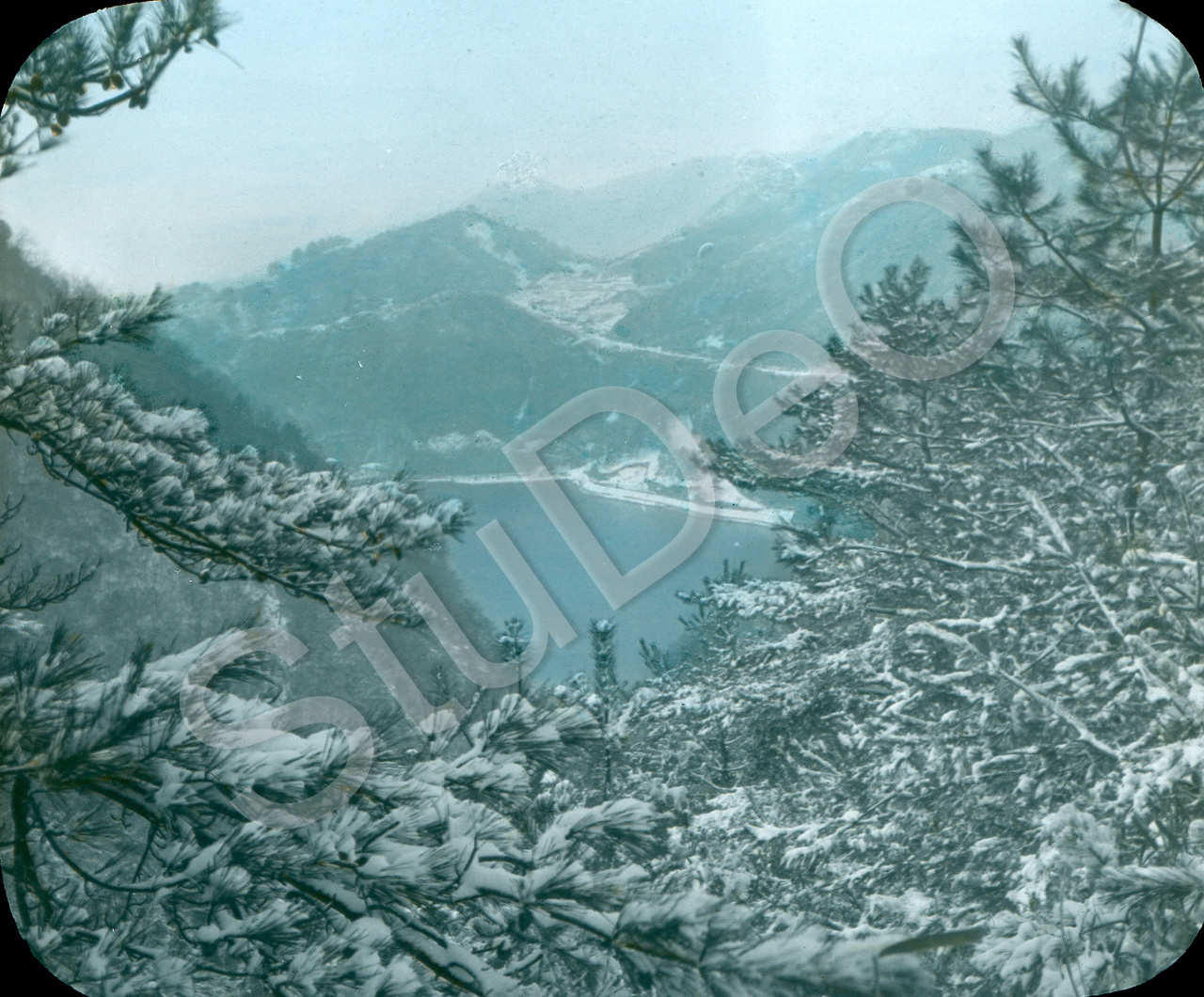 Beschreibung: Auf dem verschneiten Rocco, Blick auf den Futa Tabi Stausee.