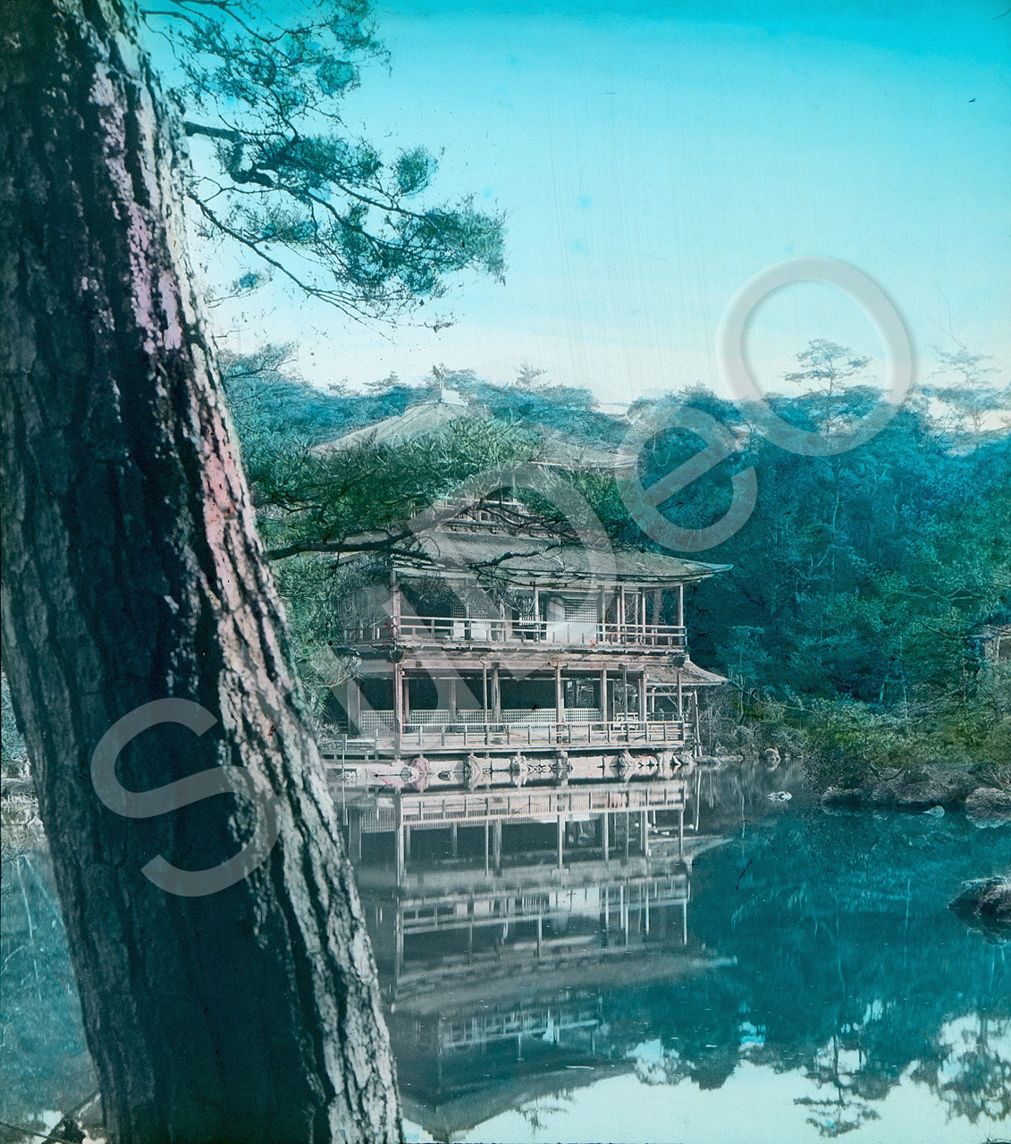 Beschreibung: Goldener Tempel Kyoto, Pfahlbau im Bergsee.