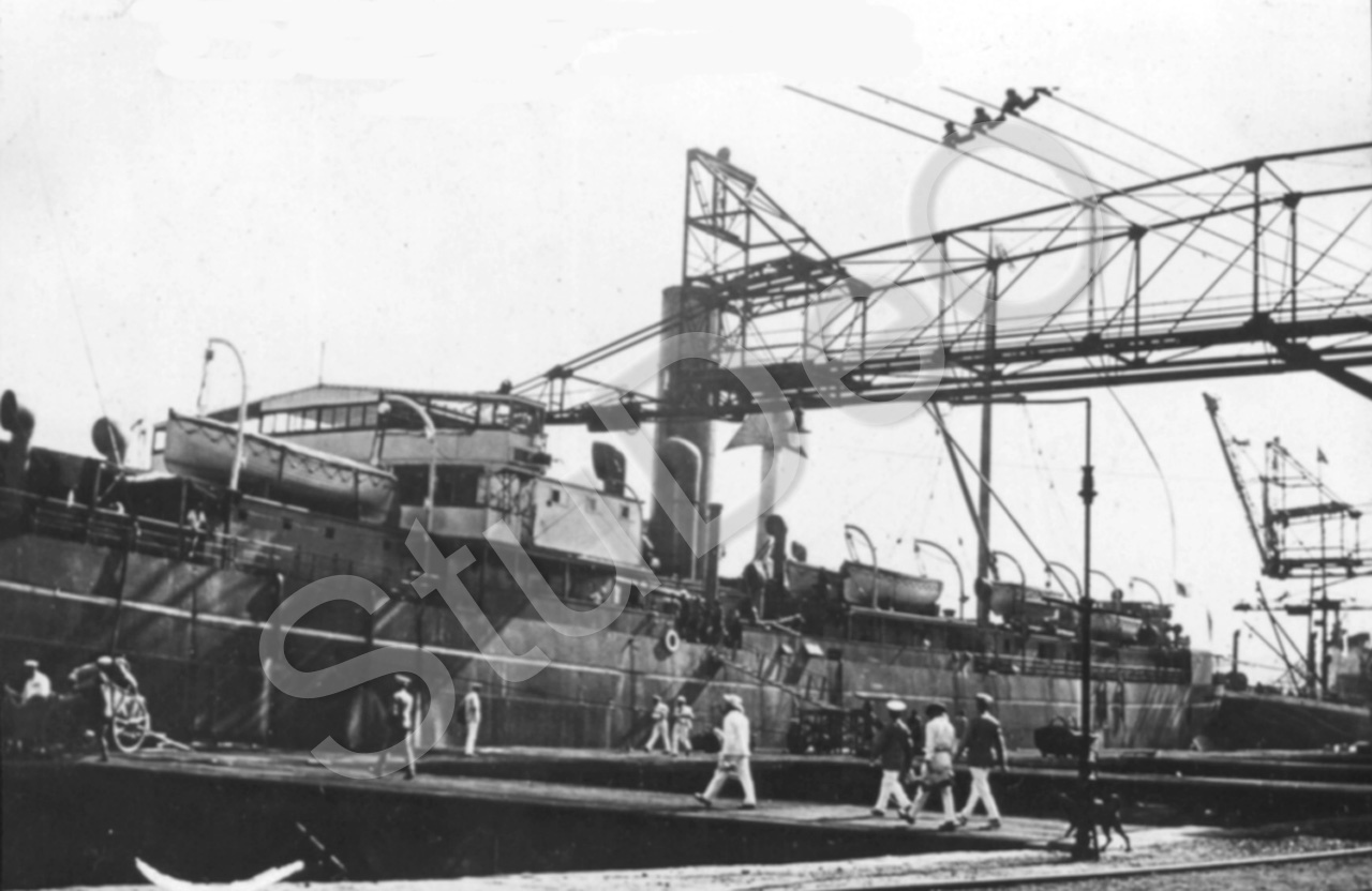 Beschreibung: Repatriierung kriegsgefangener deutscher Soldaten aus Japan. Dampfer Hofuku Maru liegt im Hafen von Sabang auf Sumatra (Niederländisch Ostindien) an. Einnahmen der Kohlen.