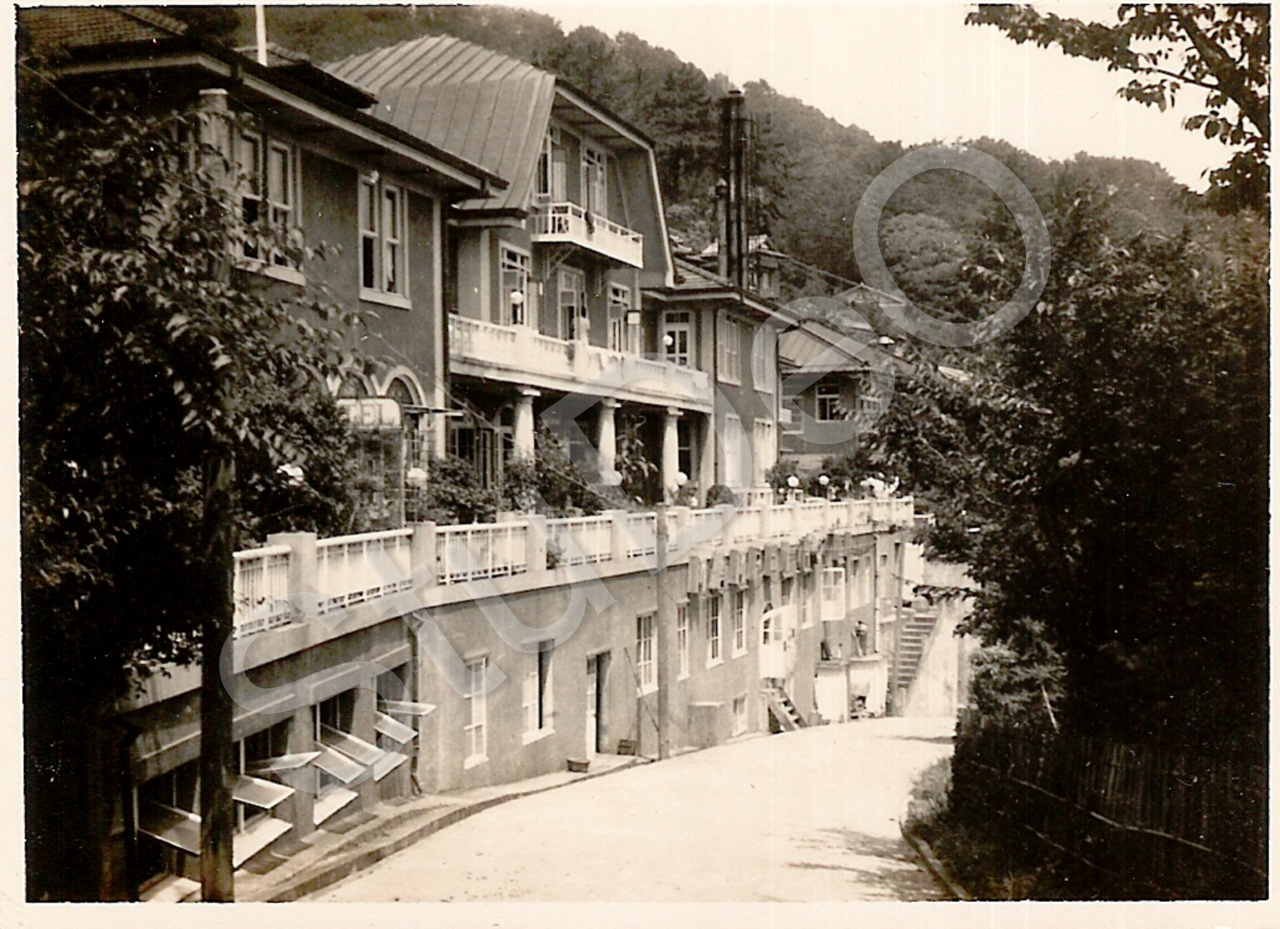 Beschreibung: Vorderansicht des Mampei-Hotels, Atami.