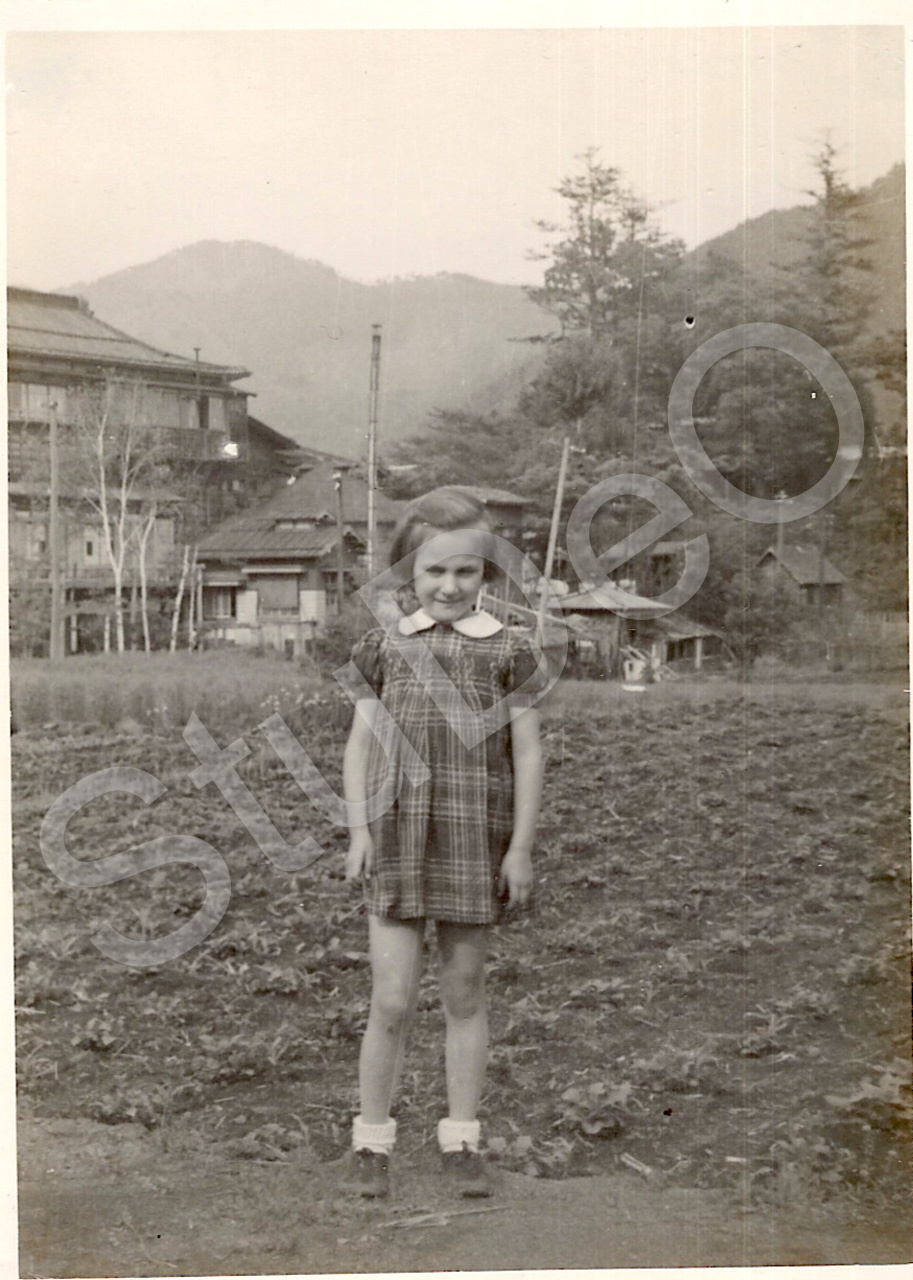 Beschreibung: Dagmar Denklau an einem Feldrand. Ein japanisches Holzhaus war abgebrannt und wir gingen vom Bekan-Hotel dorthin, um es uns anzusehen. Die verkohlten Reste sahen sehr bedrückend aus. Bei dieser Gelegenheit machte Herr Köhler dieses Foto.